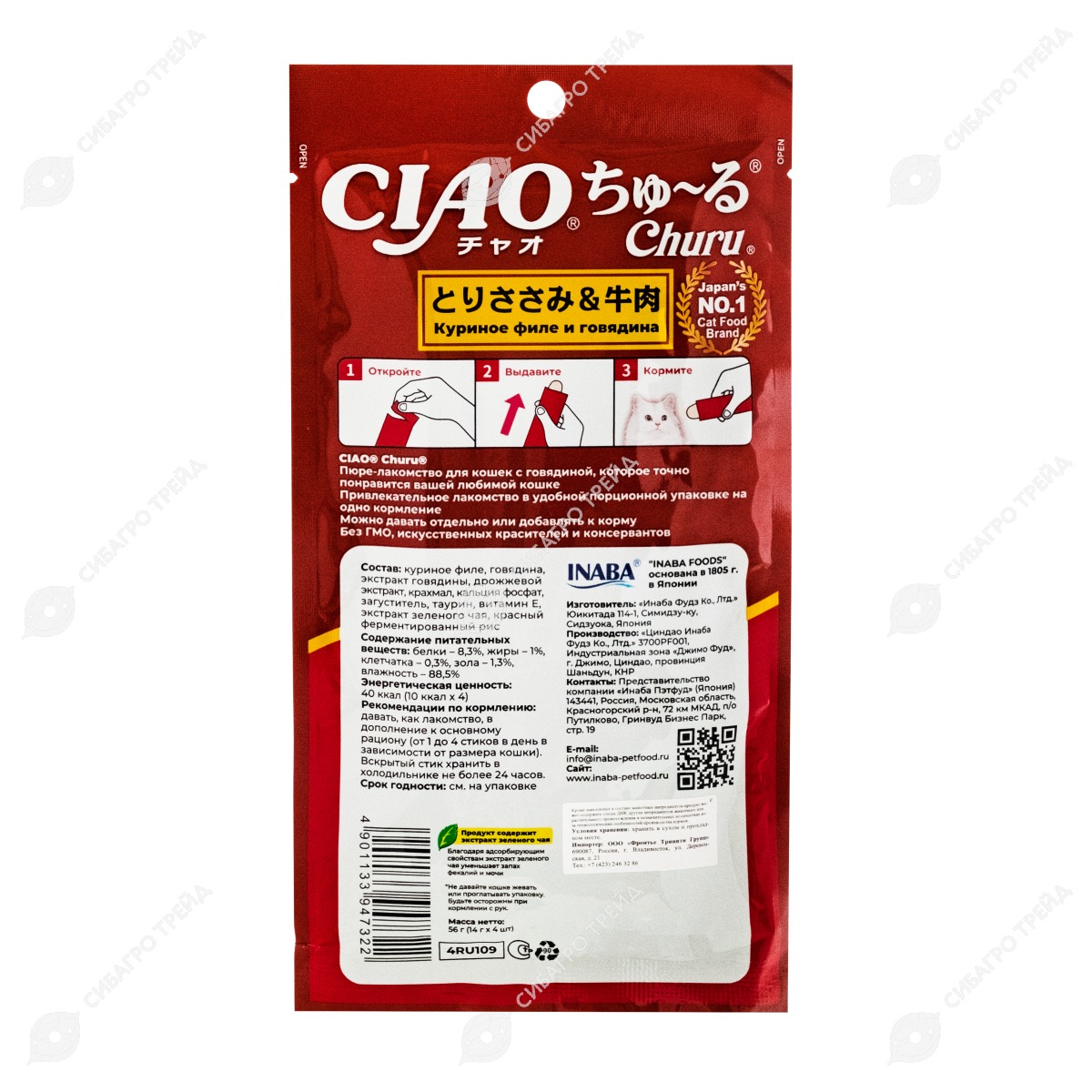 INABA Ciao Churu пюре из курицы и говядины для кошек, 4 шт по 14 г