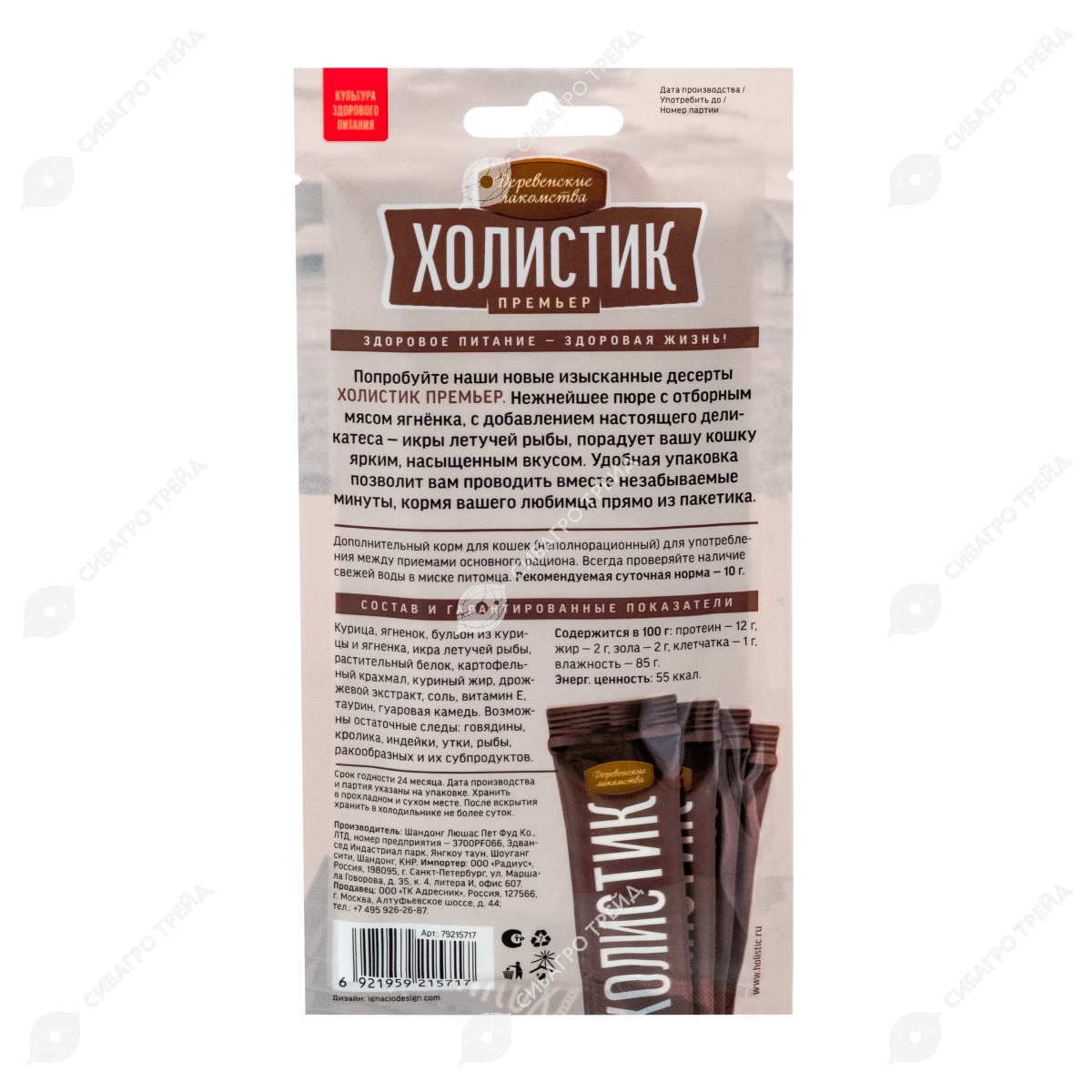 Попробуйте новые изысканные десерты холистик премьер. Нежнейшее пюре из отборного мяса утки, с добавлением настоящего деликатеса - икры летучей рыбы, порадует вашу кошку ярким, насыщенным вкусом. Удобная упаковка позволит вам проводить вместе незабываемые минуты, кормя вашего любимца прямо из пакетика.
