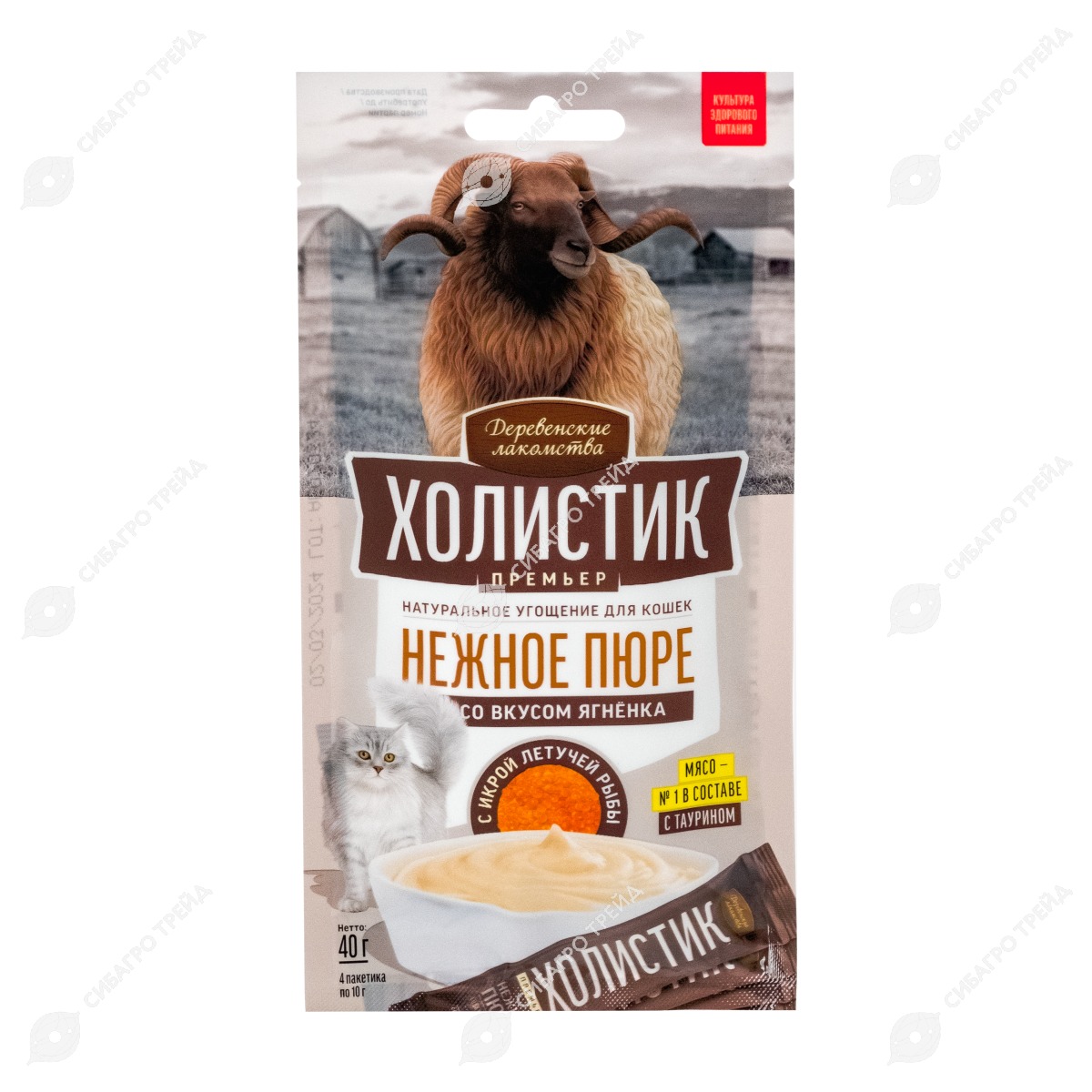 ДЕРЕВЕНСКИЕ ЛАКОМСТВА Холистик Нежное пюре из ягненок с икрой для кошек, 4 шт по 10 г