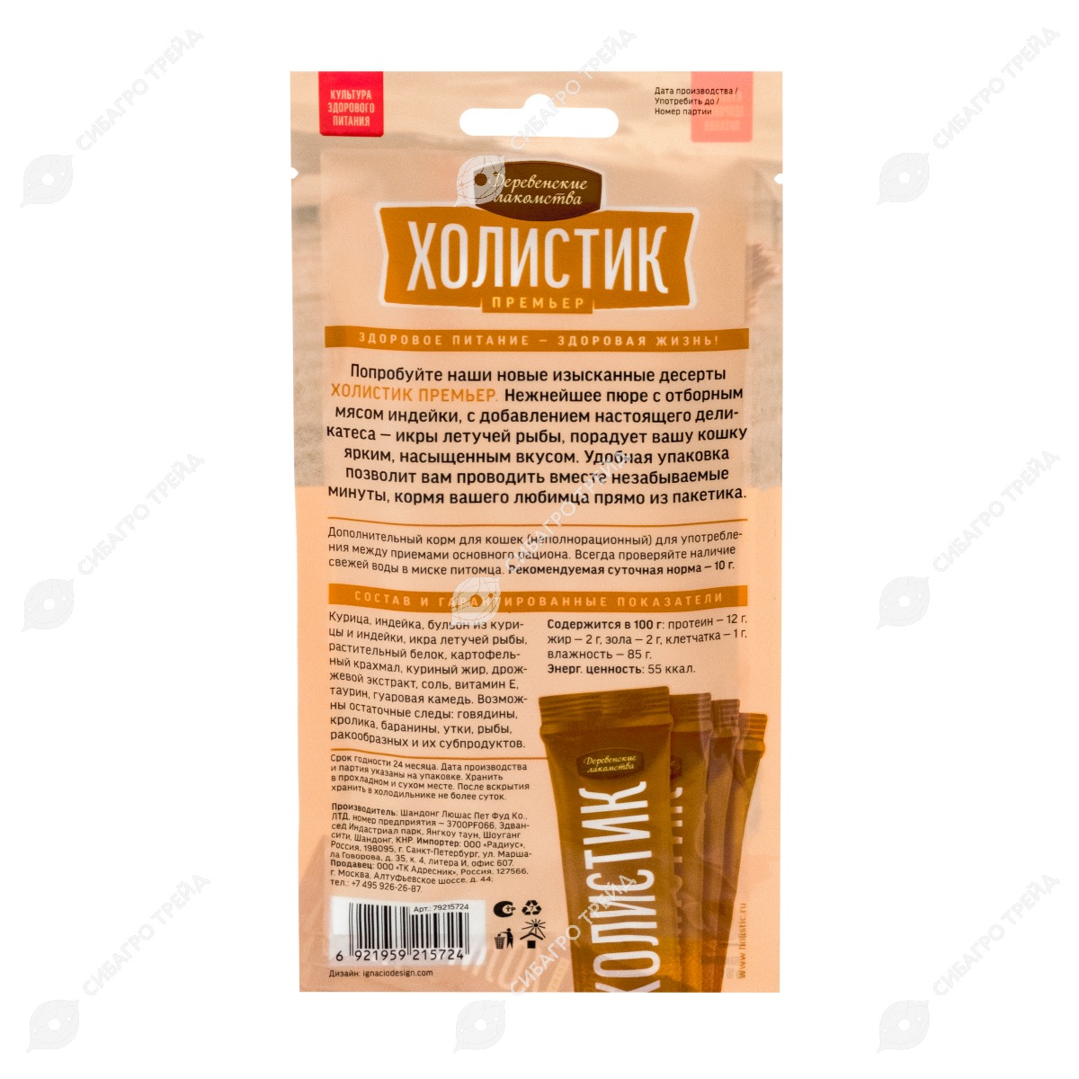 Попробуйте новые изысканные десерты холистик премьер. Нежнейшее пюре с мясом индейки, с добавлением настоящего деликатеса - икры летучей рыбы, порадует вашу кошку ярким, насыщенным вкусом. Удобная упаковка позволит вам проводить вместе незабываемые минуты, кормя вашего любимца прямо из пакетика.