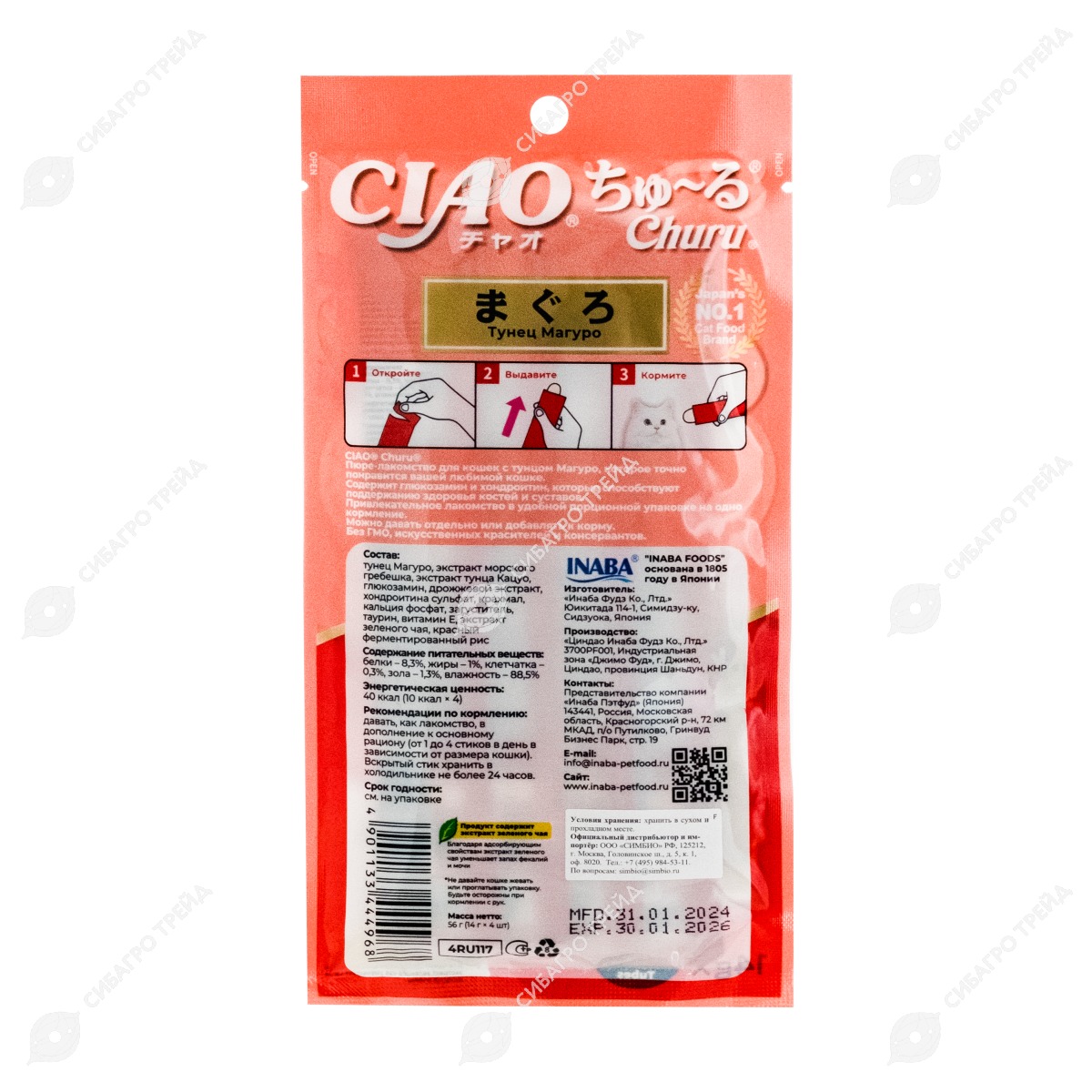 INABA Ciao Churu пюре для здоровья костей и суставов с тунцом магуро для кошек, 4 шт по 14 г