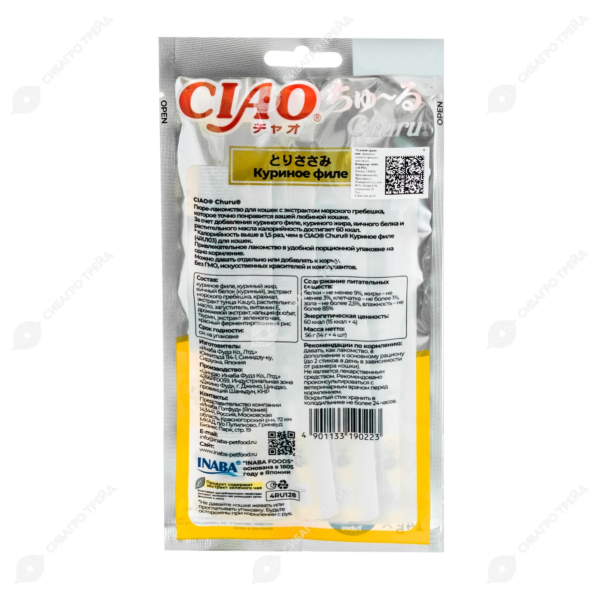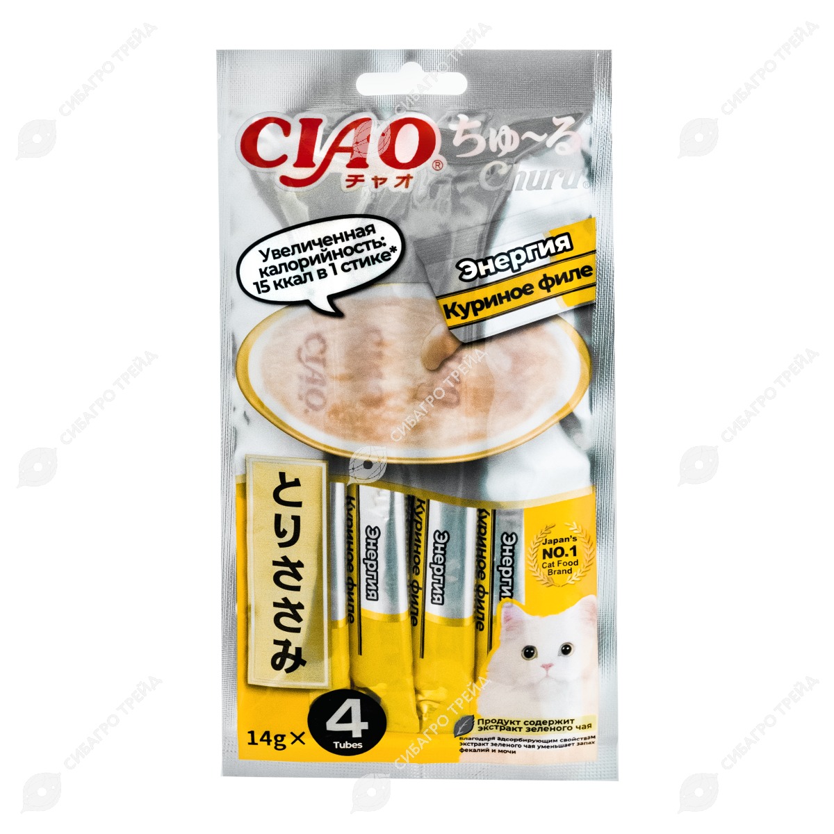 INABA Ciao Churu функциональное пюре из куриного филе для кошек (энергия), 4 шт по 14 г