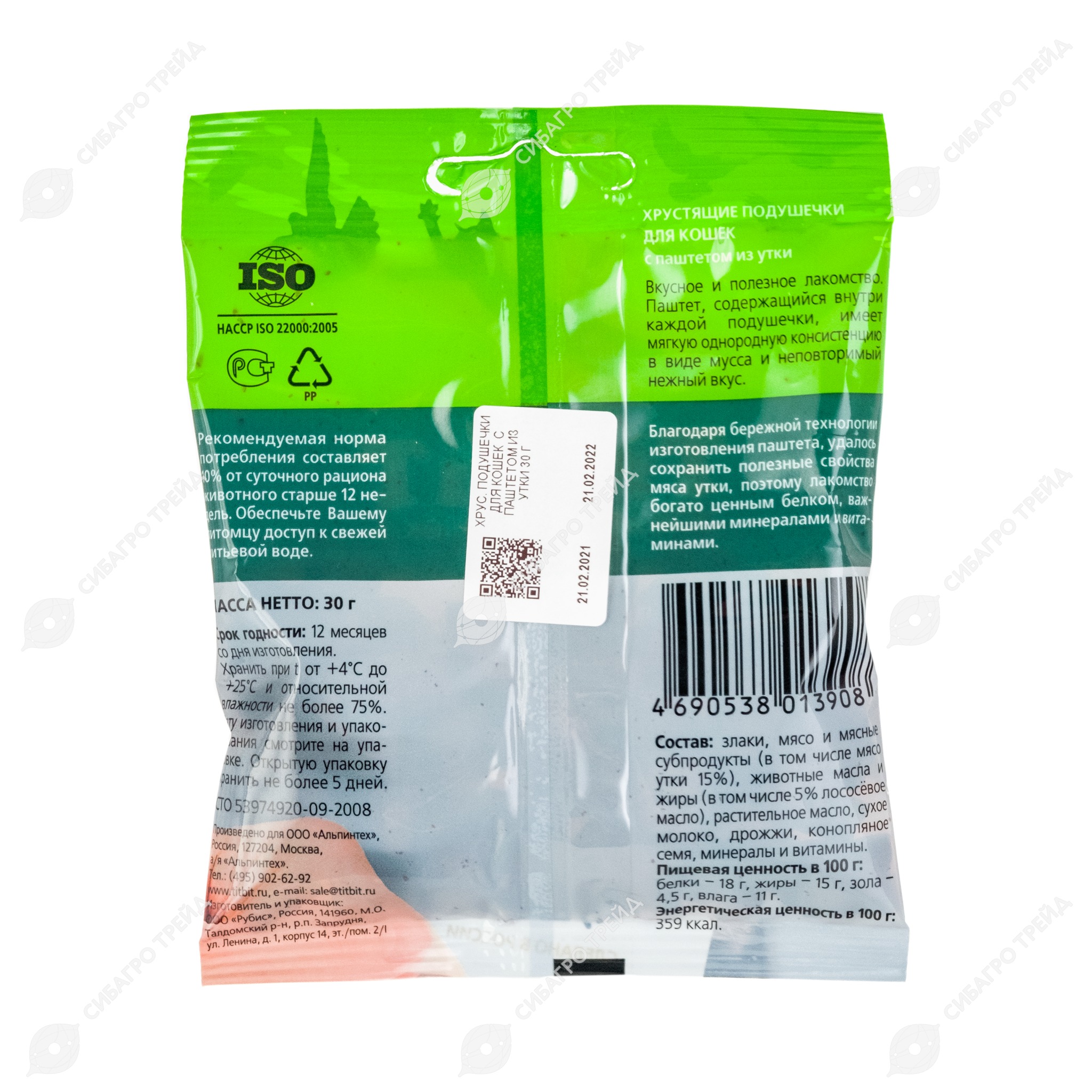 TITBIT лакомство хрустящие подушечки для кошек с паштетом из утки, 30 г