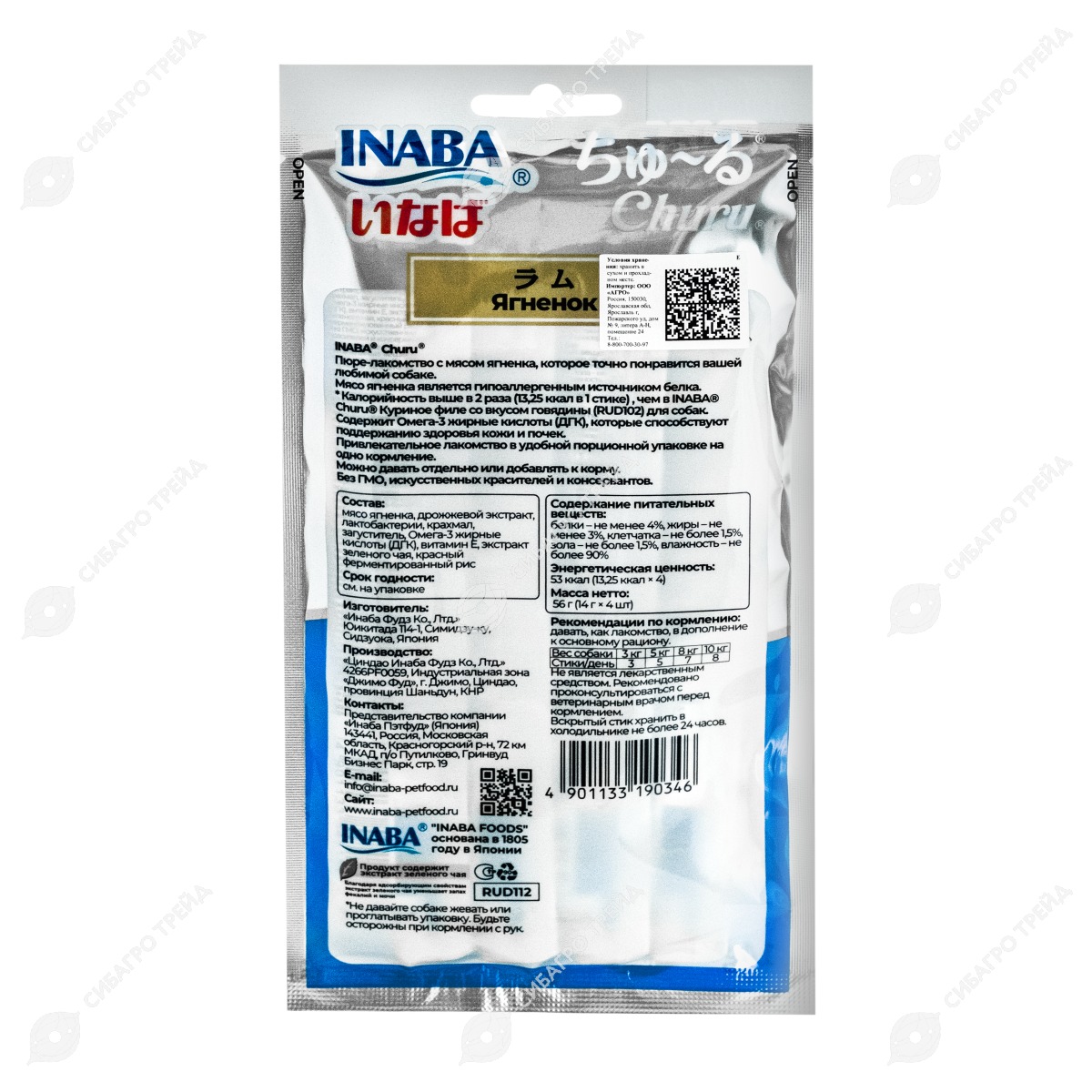 INABA Churu функциональное пюре из ягненка для собак (гипоаллергенное лакомство), 4 шт по 14 г