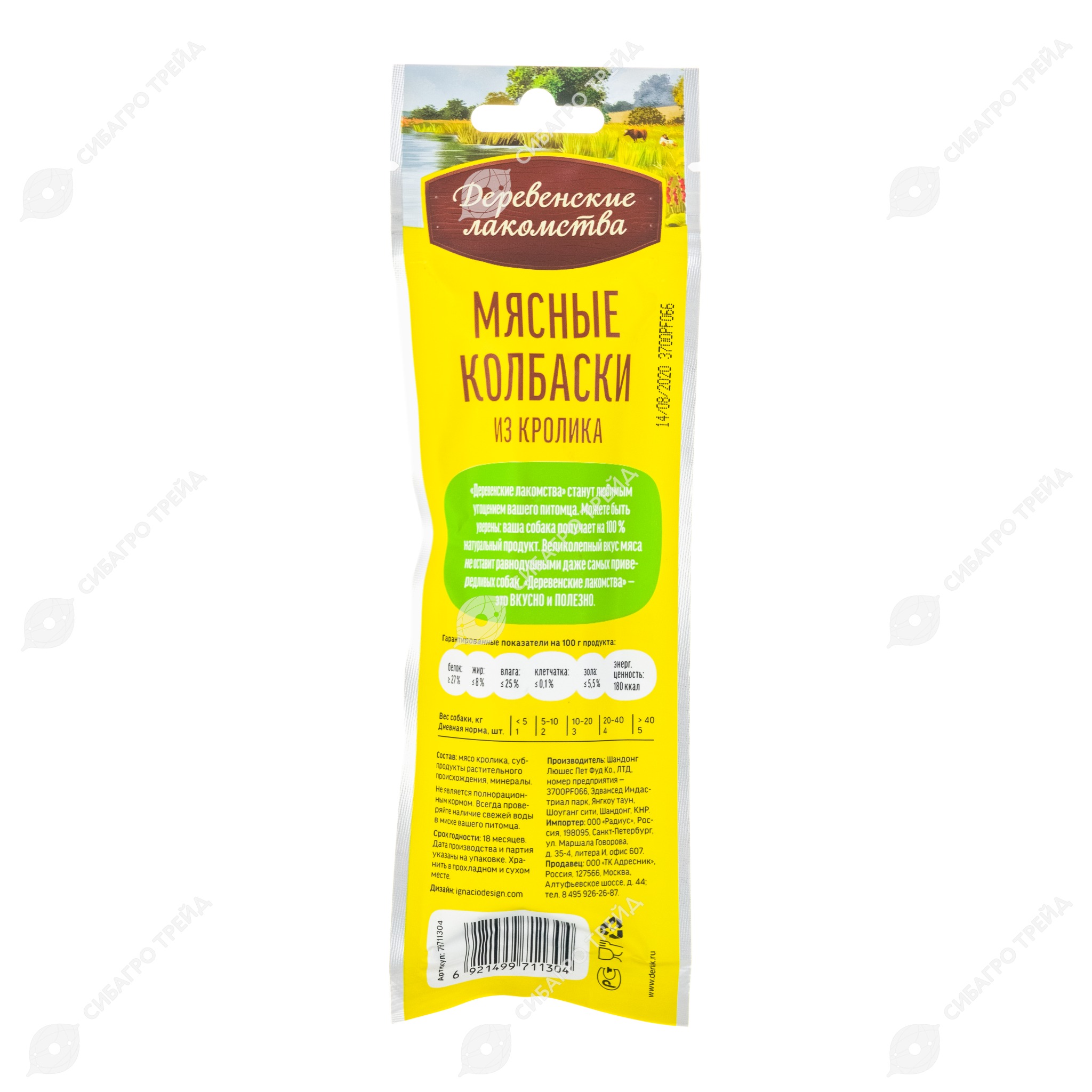 ДЕРЕВЕНСКИЕ ЛАКОМСТВА колбаски из кролика для собак, 45 г