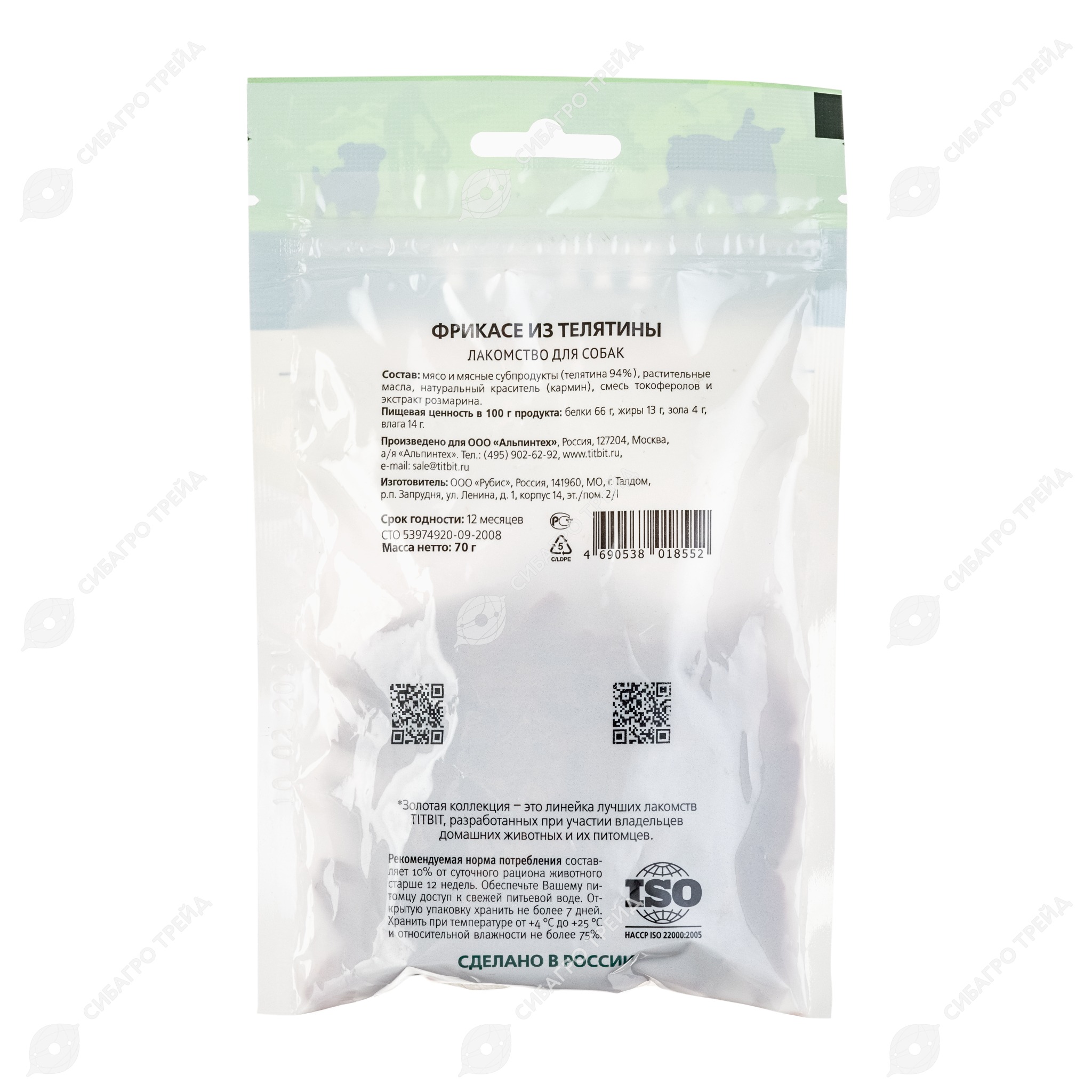 TITBIT лакомство фрикасе из телятины для собак, 70 г (Золотая коллекция)