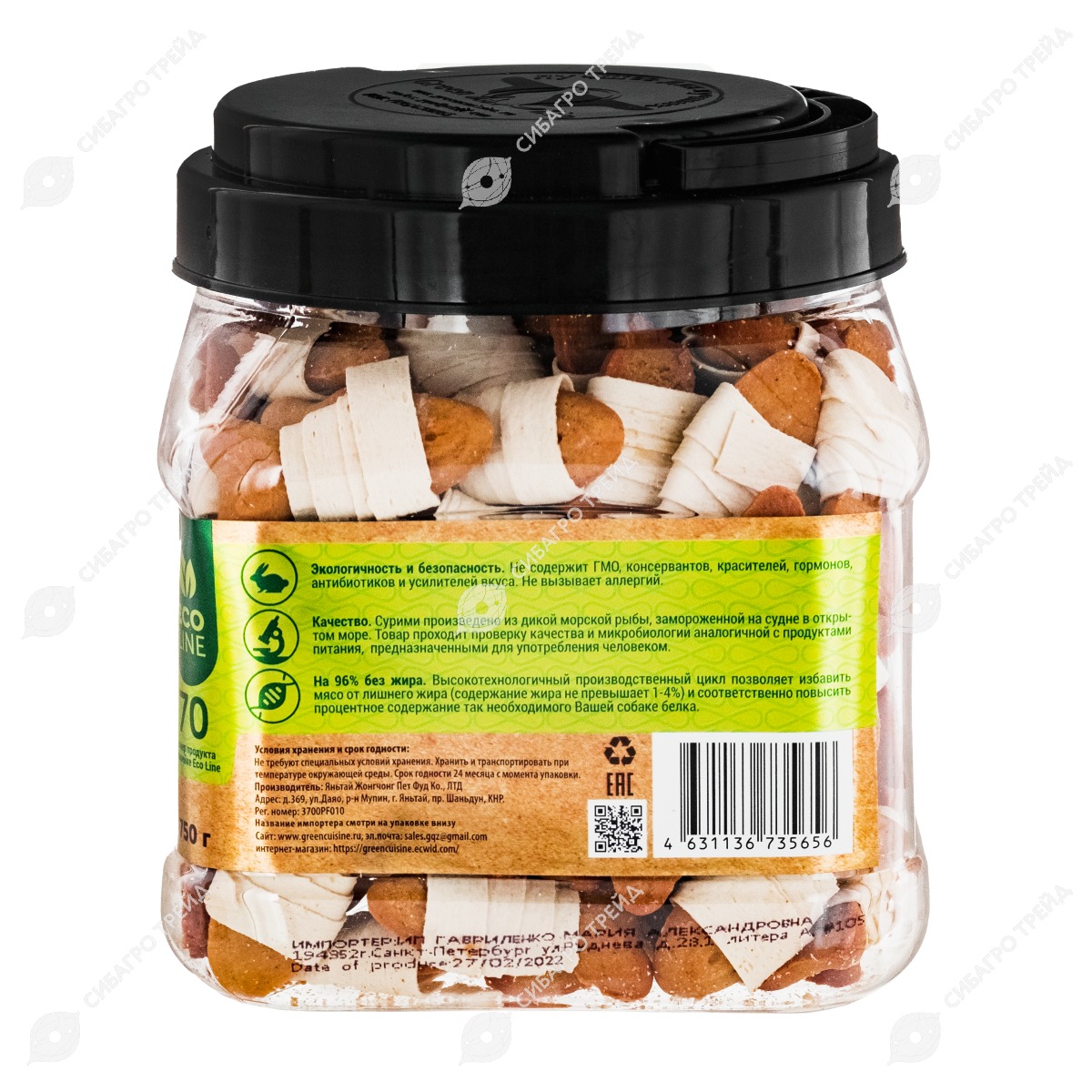 Лакомство ЗДОРОВЬЕ галеты сурими из трески и злаки для собак и кошек, 750 г, GREENQZIN