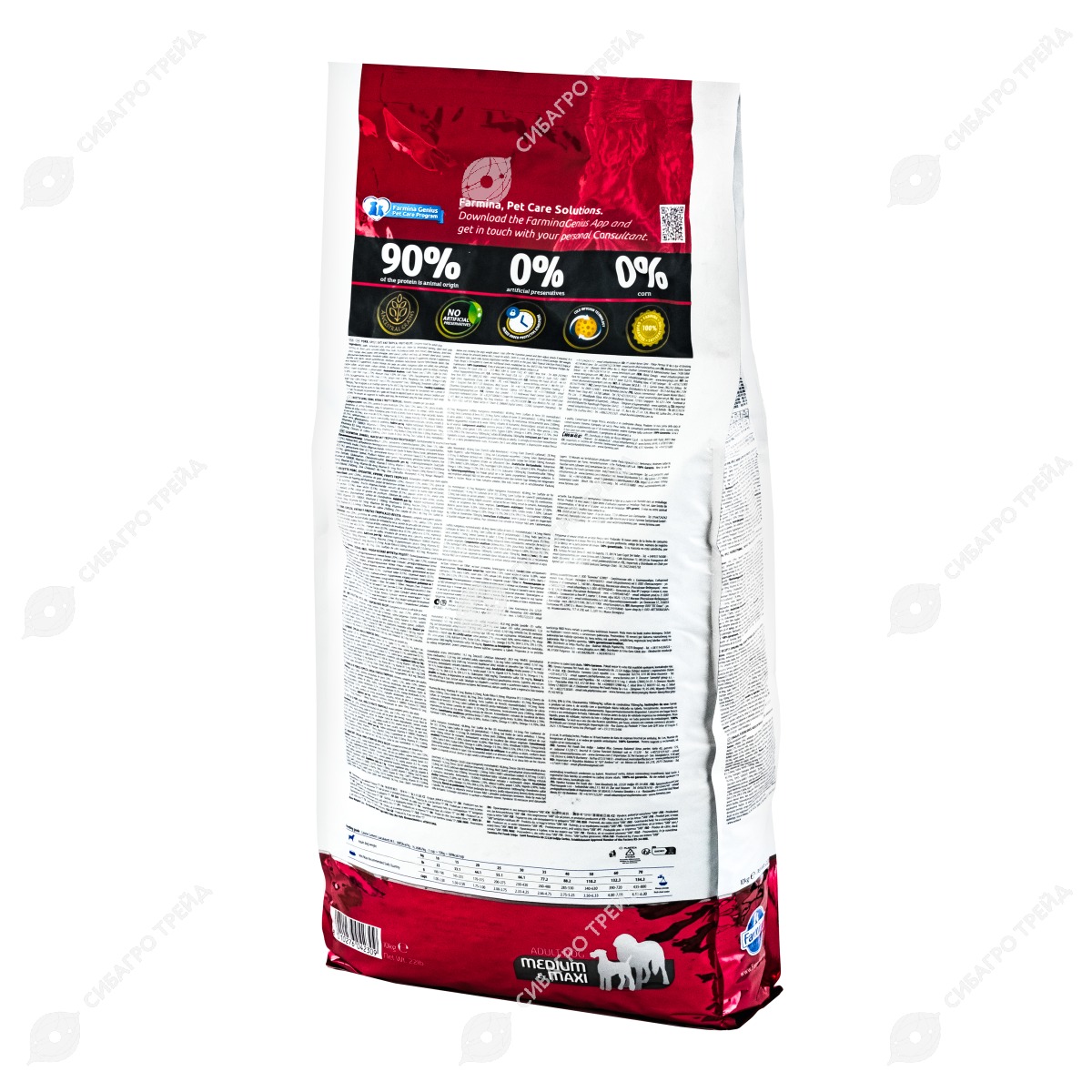 Свинина (20%), дегидратированный свиной белок (20%), спельта (12%), овес (12%), куриный жир, дегидратированная сельдь, пульпа сахарной свеклы, рыбий жир (сельди), дегидратированные белки жвачных животных (ягненок, говядина),