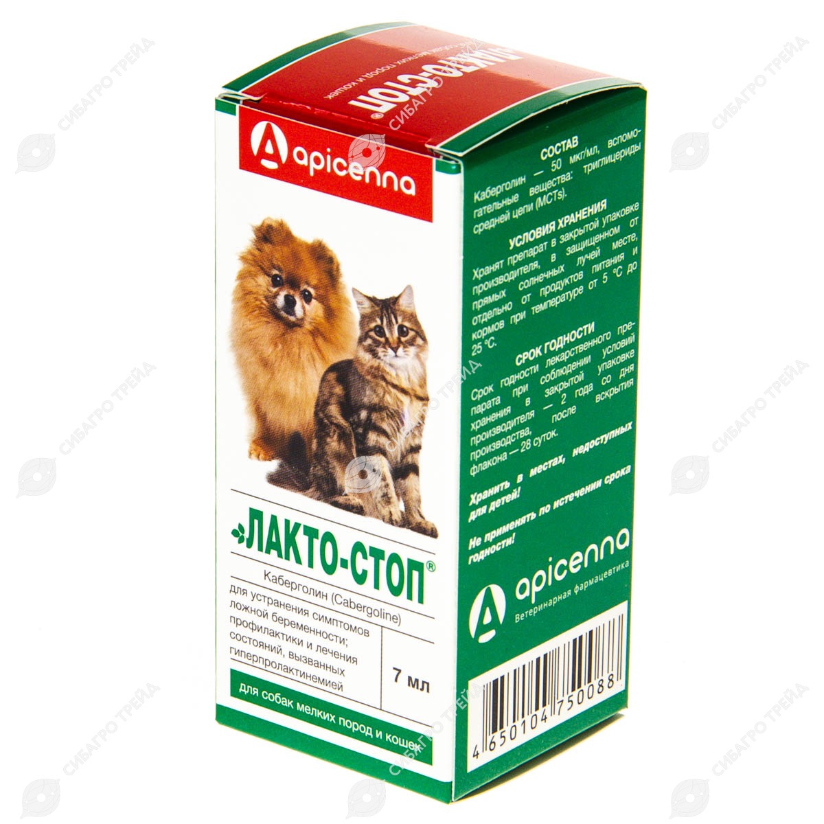 Лакто-Стоп подавляет лактацию, предотвращает увеличение молочных желез и профилактирует развитие лактационного мастита. Снижение уровня пролактина способствует быстрому исчезновению признаков ложной беременности у животного.