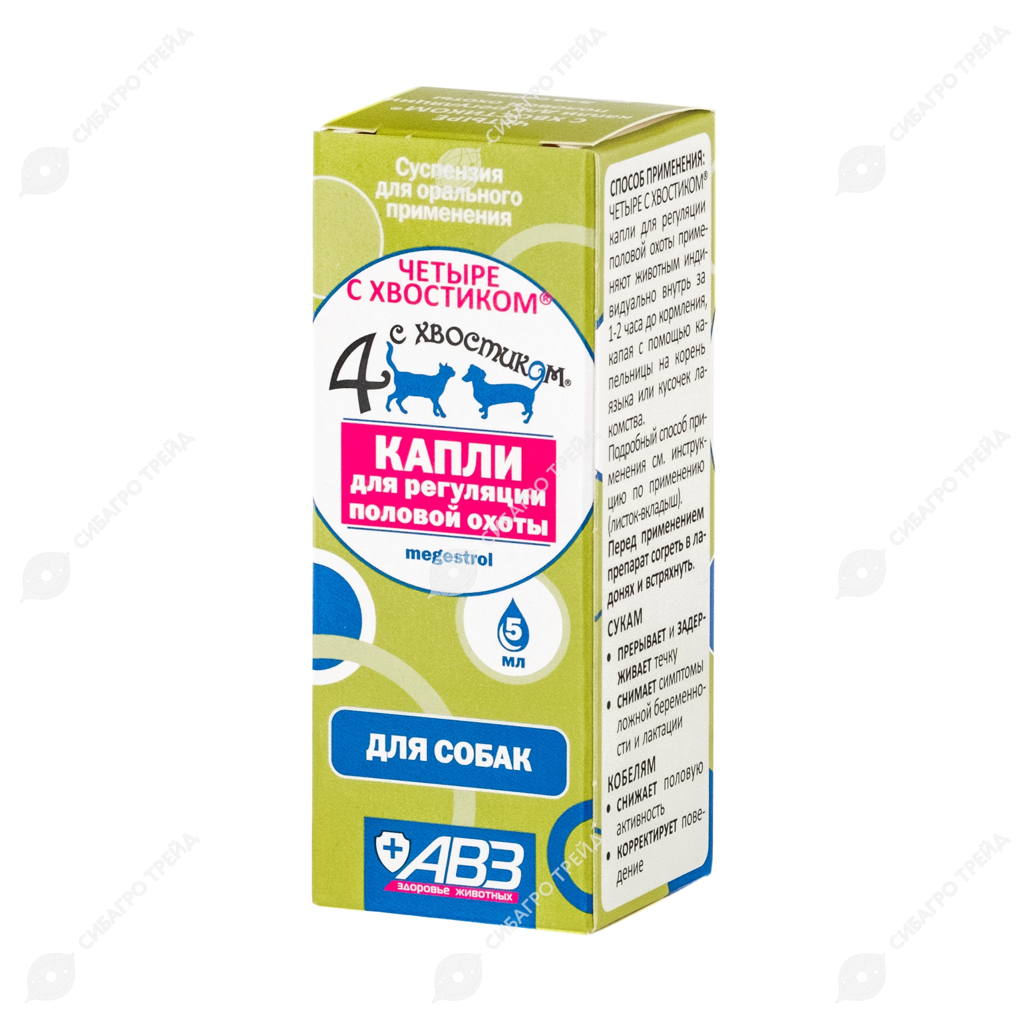 ЧЕТЫРЕ С ХВОСТИКОМ капли для регуляции половой охоты у собак, 5 мл