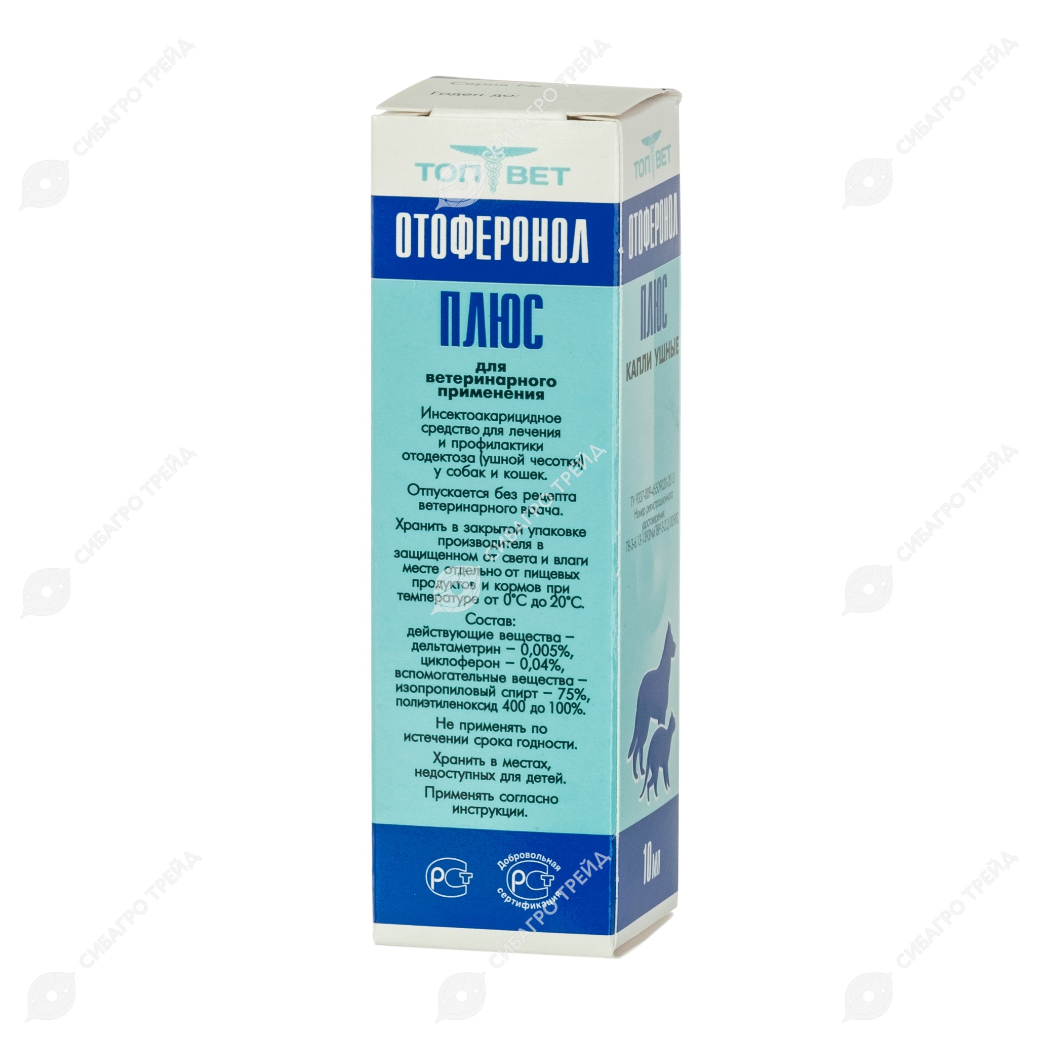 Отоферонол® Плюс - акарицидный препарат в форме ушных капельдля лечения и профилактики отодектоза (ушной чесотки)собак и кошек.