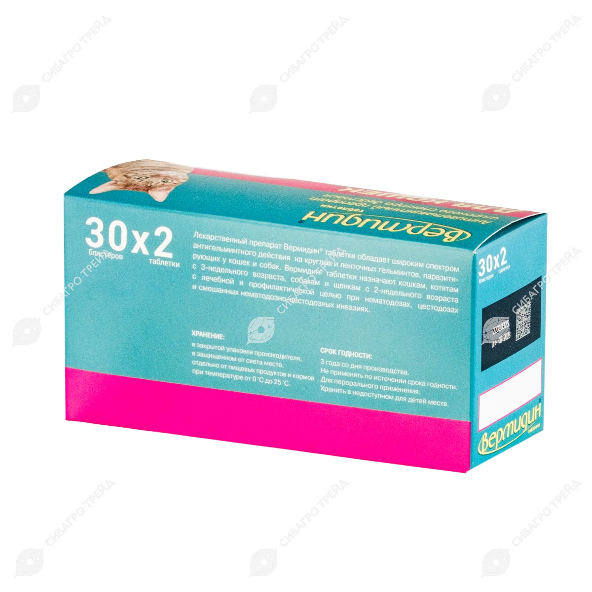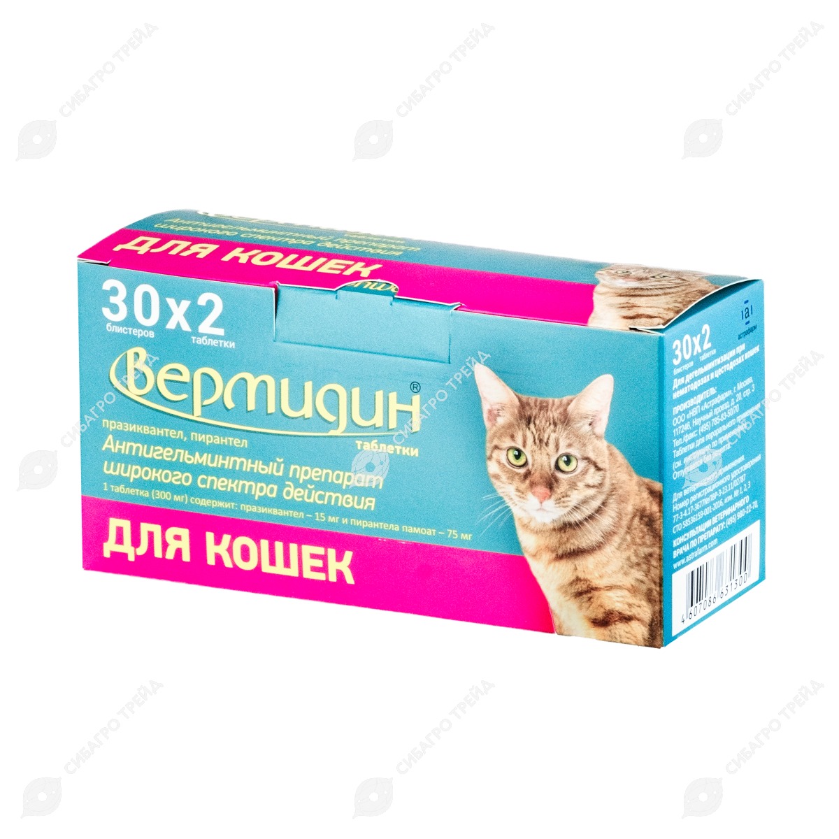 ВЕРМИДИН для кошек, 30 блистеров по 2 табл