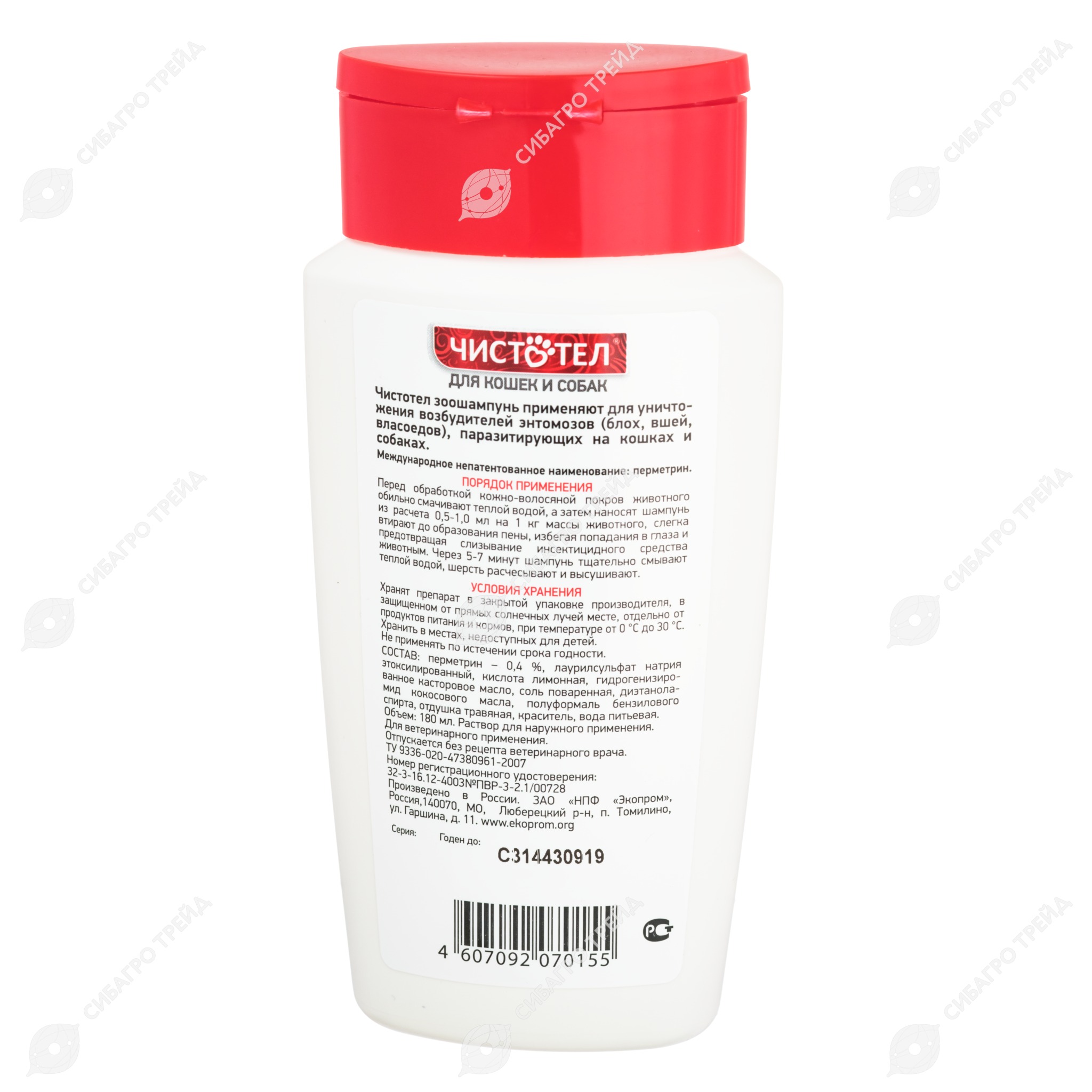 ЧИСТОТЕЛ шампунь антипаразитарный для собак и кошек, 180 мл