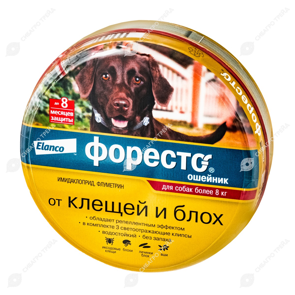 ОШЕЙНИК ФОРЕСТО предназначен для уничтожения блох, вшей, власоедов и иксодовых клещей, паразитирующих на собаках и кошках, а также для защиты животных от их нападения.
