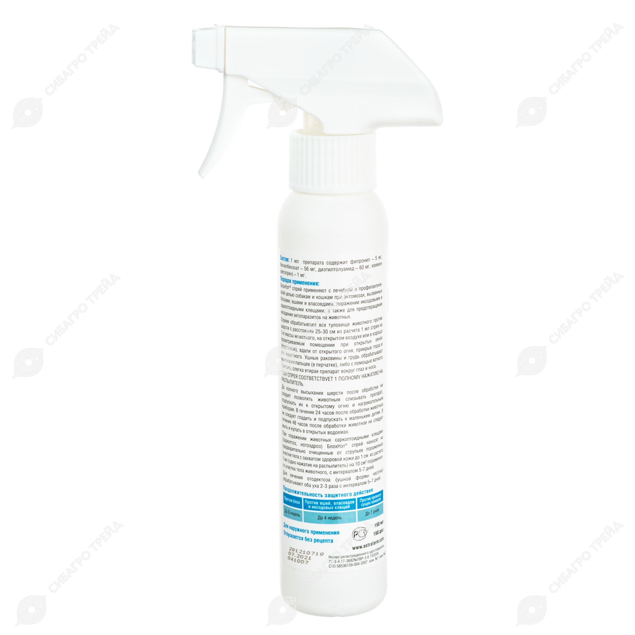 БлохНэт спрей не предназначен для обработки продуктивных животных.
