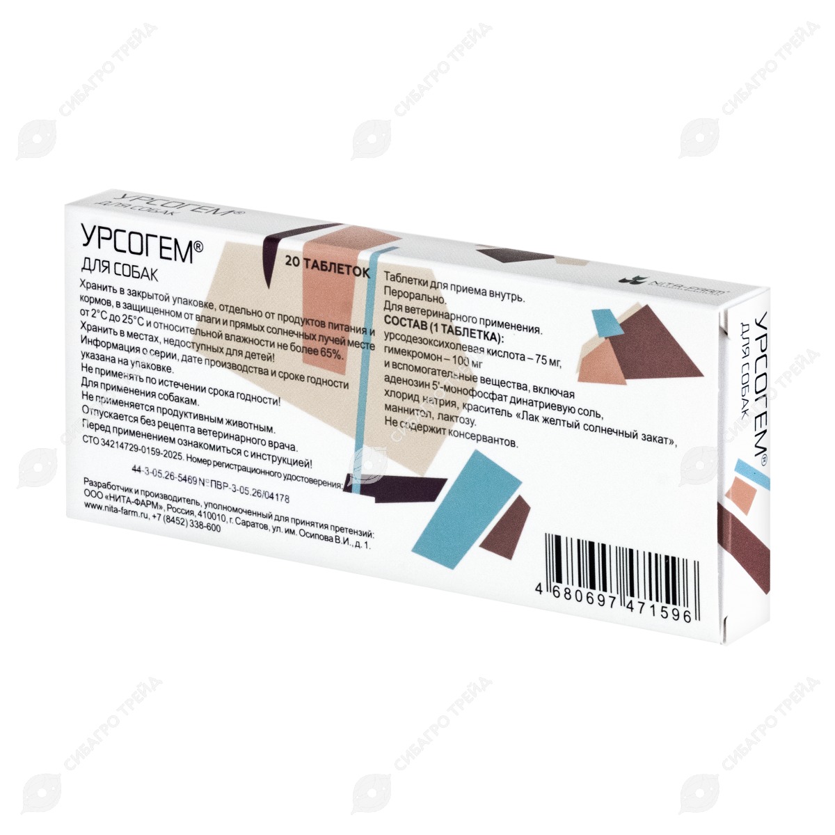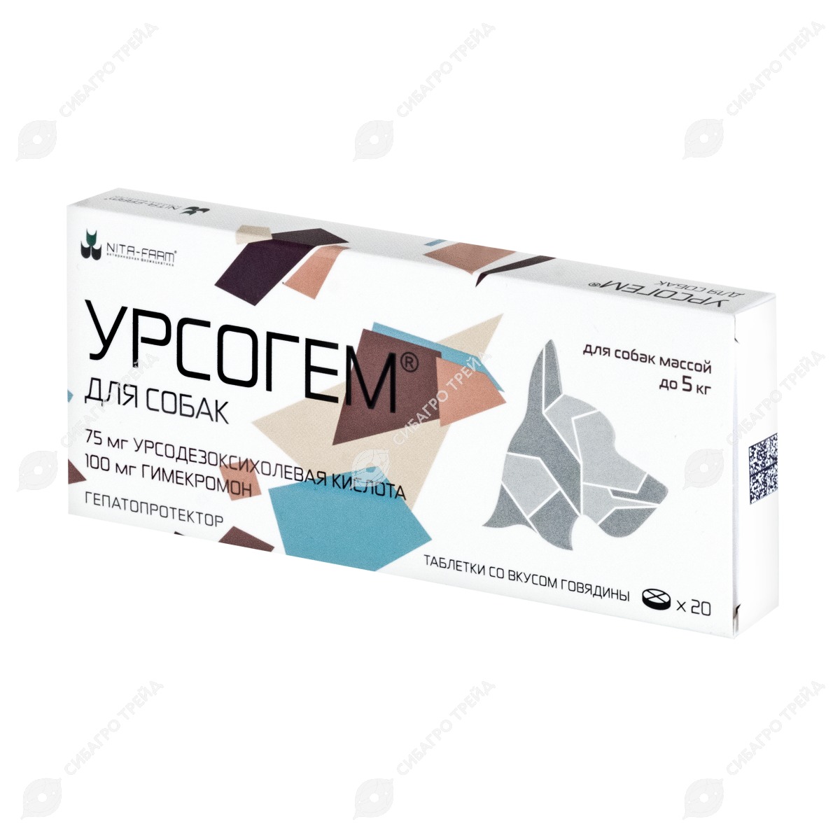 Урсогем для собак весом до 5 кг, 75 мг+100 мг, 20 табл