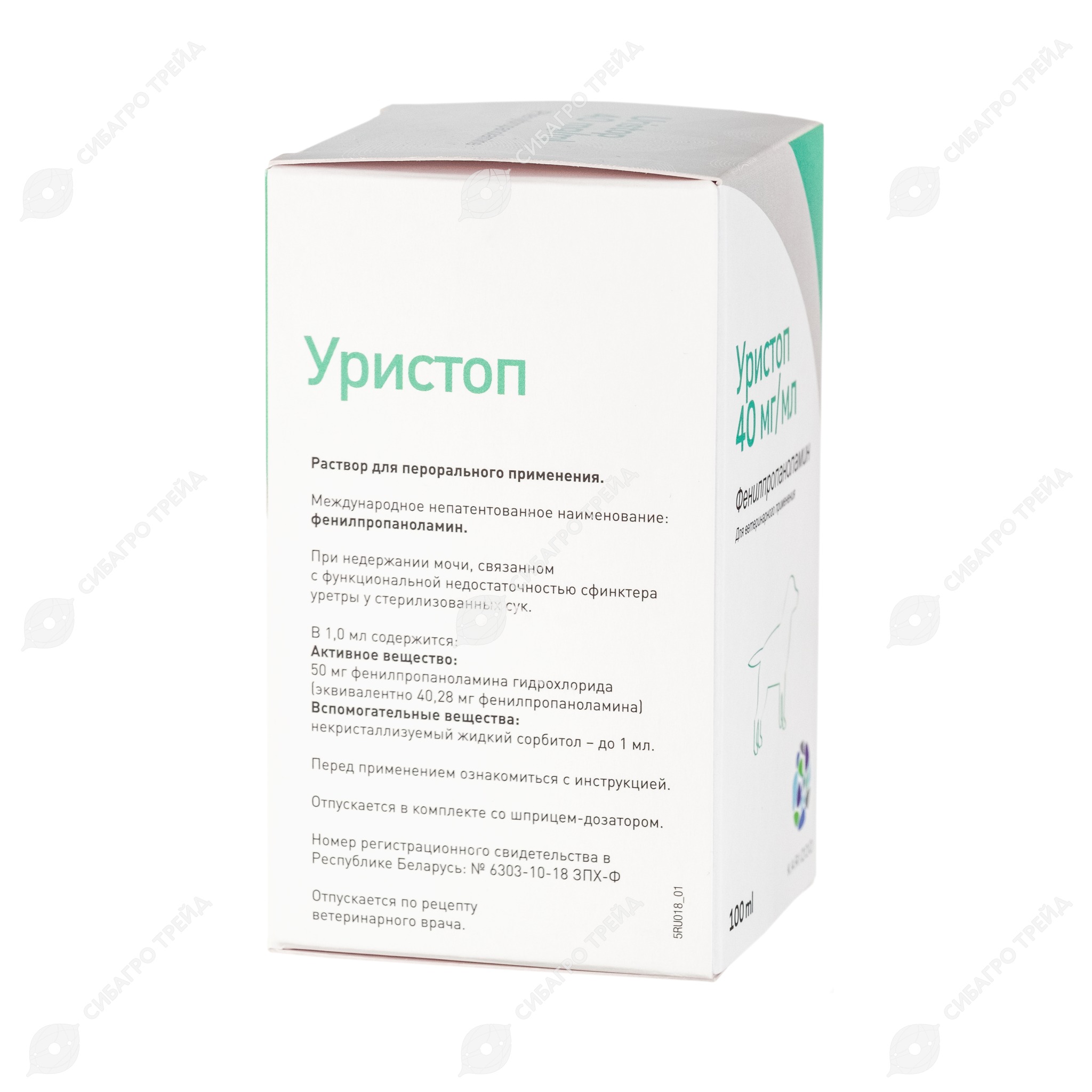 Препарат задают внутрь, ежедневно, в дозе 0,1 мл препарата на 5 кг массы тела животного (эквивалентно 1 мг фенилпропаноламина на 1 кг массы тела животного) 3 раза в сутки с кормом. Абсорбция Уристопа значительно выше при применении его натощак.