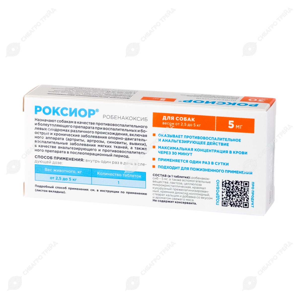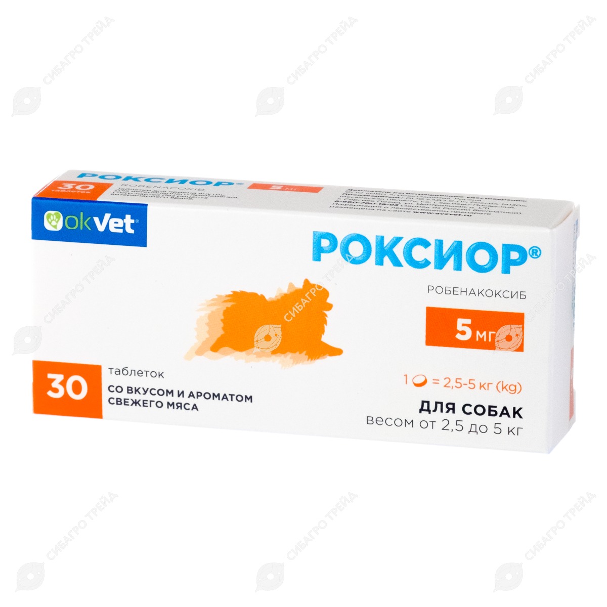 Роксиор 5 мг для собак, 3 блистера по 10 табл
