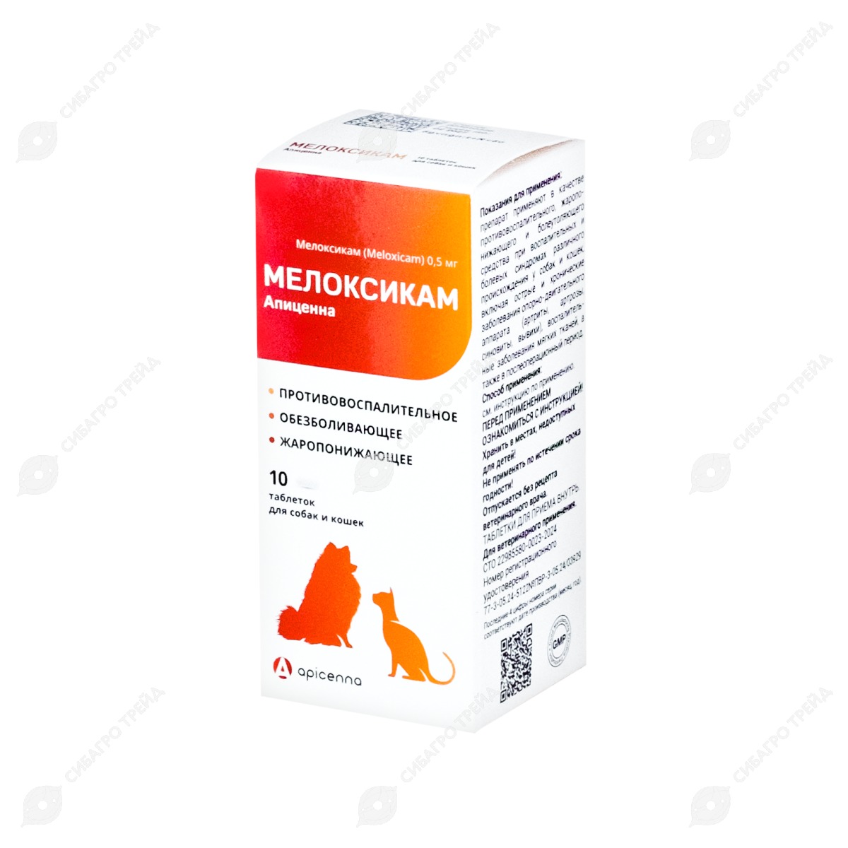 Мелоксикам 0,5 мг для собак и кошек, 10 табл по 60 мг (в банке)