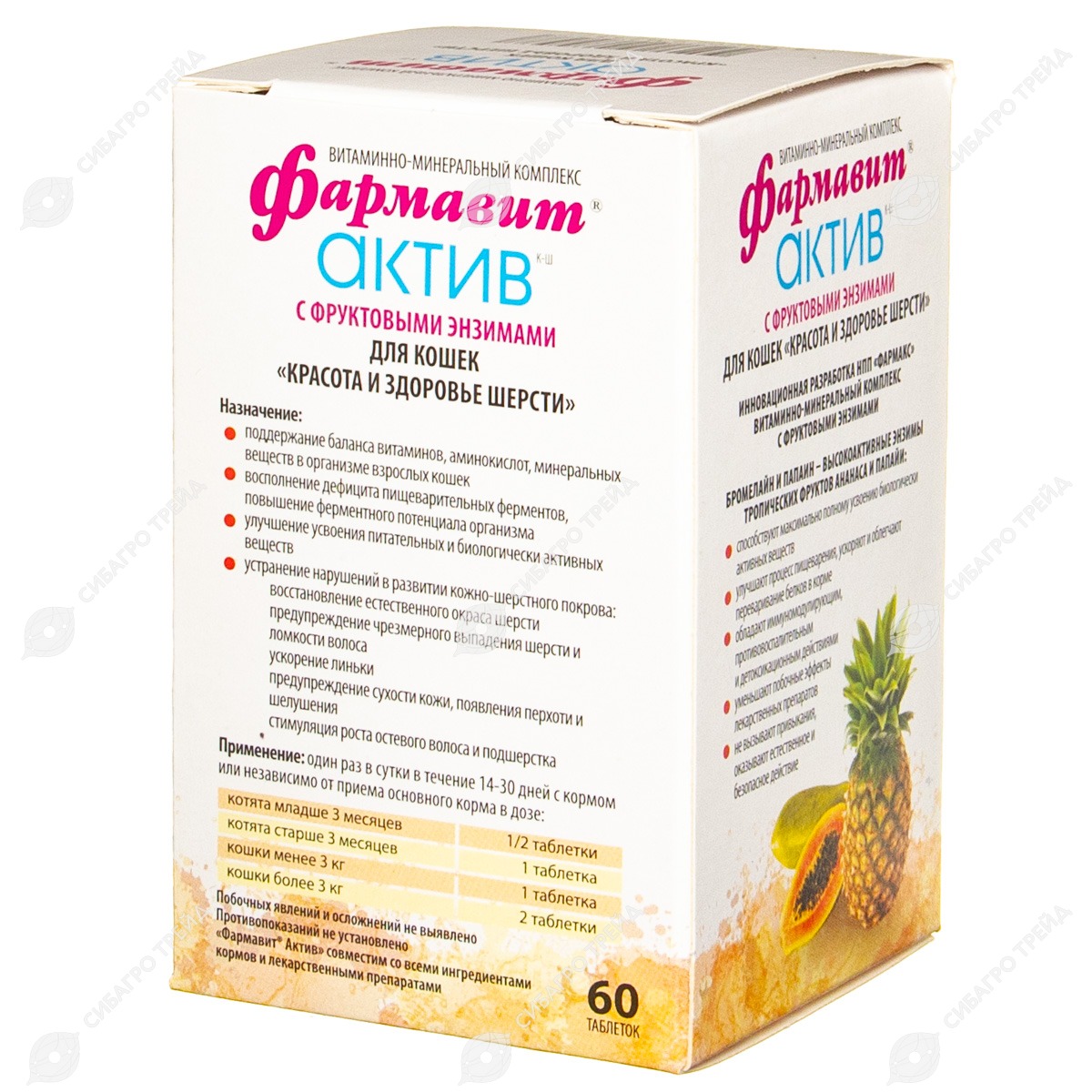 Фармавит Актив совместим со всеми ингредиентами кормов и лекарственными препаратами.