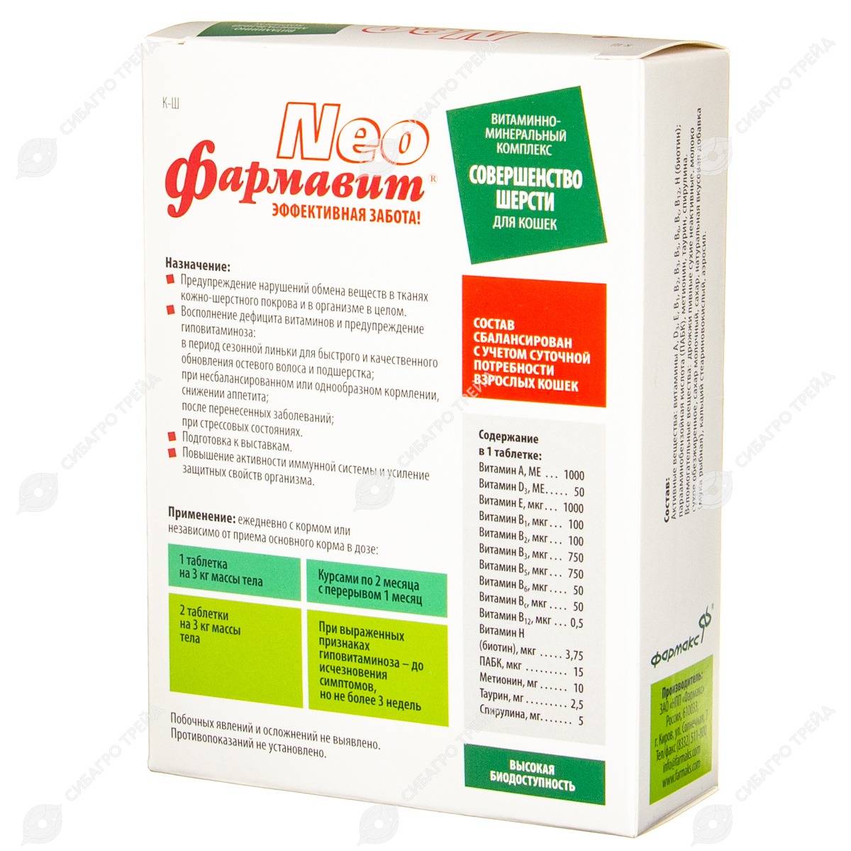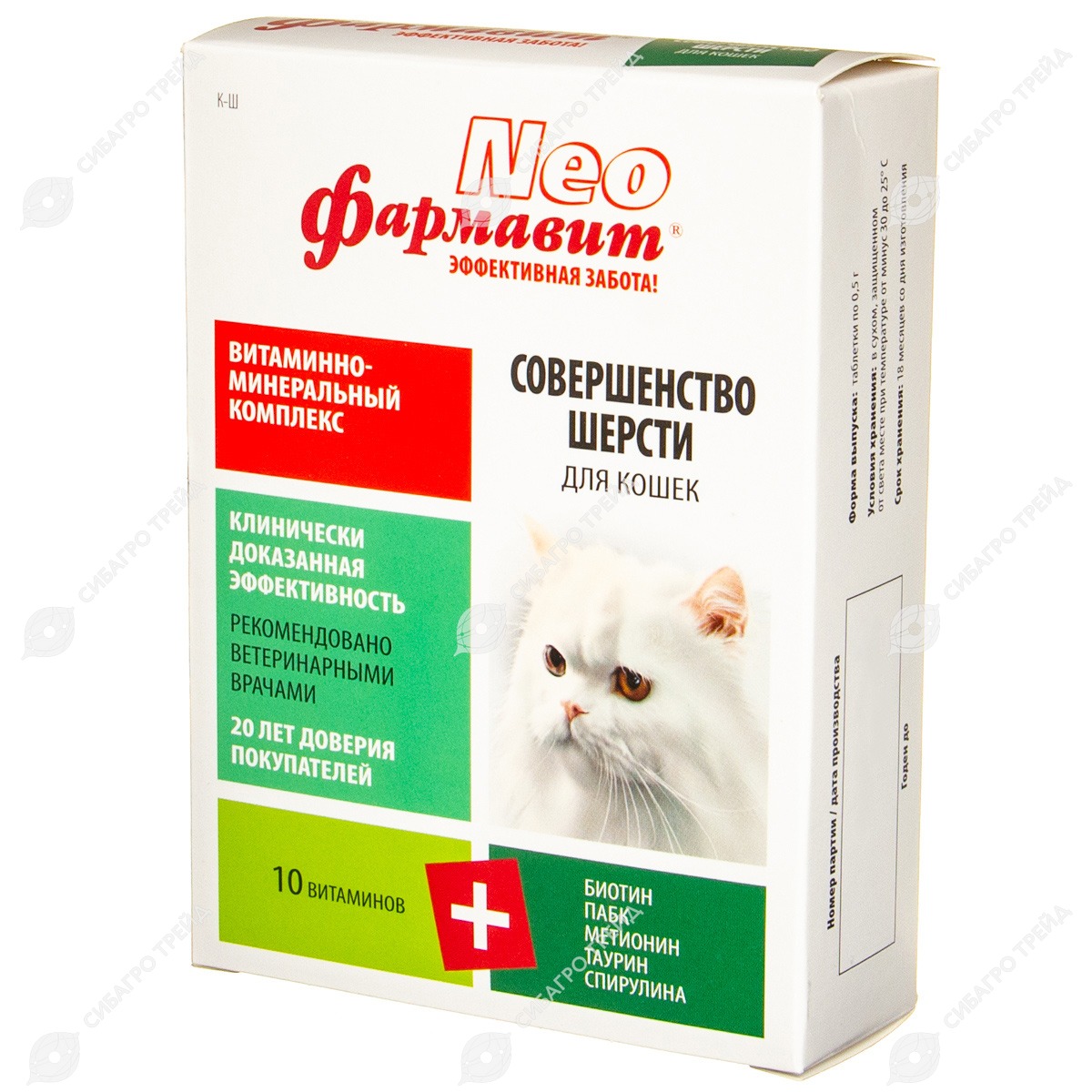 Комплекс витаминов и аминокислот в биодоступной форме, обеспечивающий полноценное питание кожи и шерстного покрова кошек. Предупреждает выпадение и поседение шерсти, повышает активность ферментов клеток кожи и улучшает её эластичность. Шерсть животных, получающих добавку, отличается густым, прочно сидящим волосом.