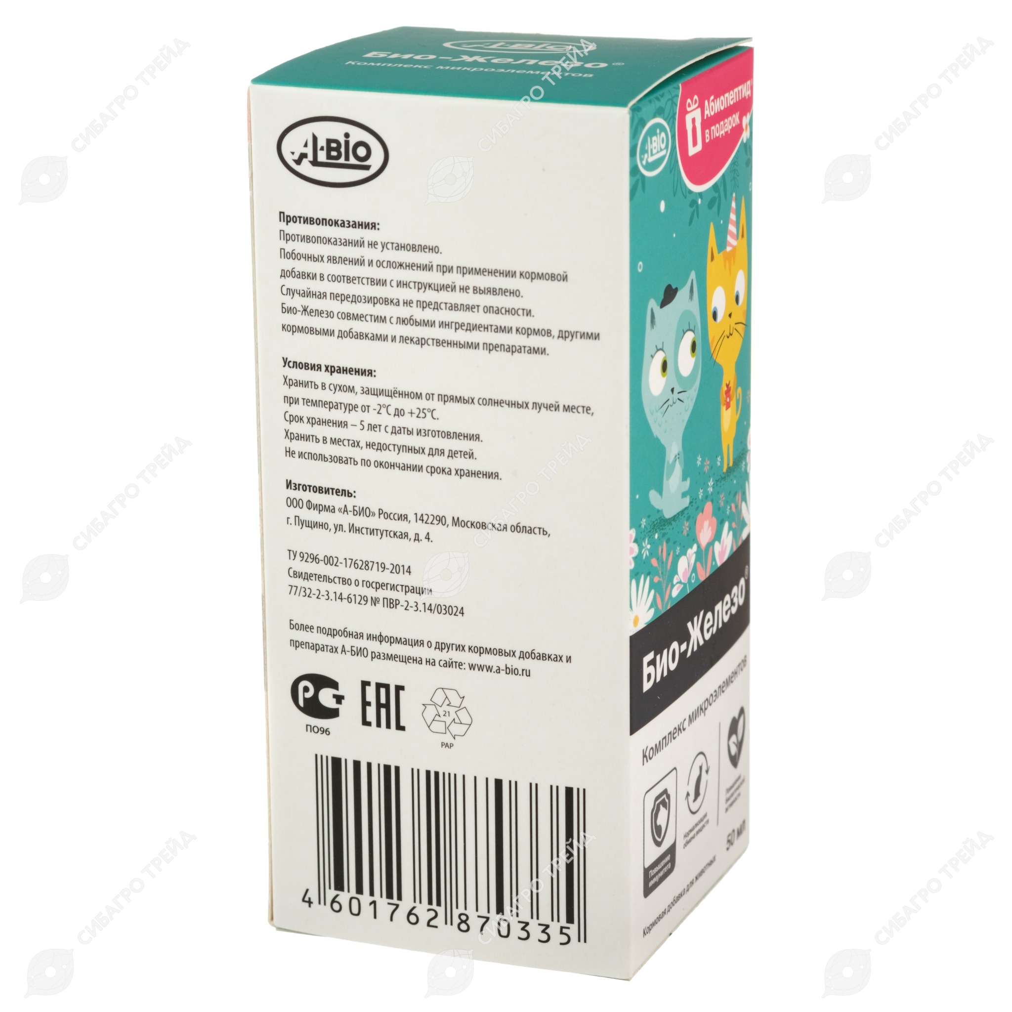 БИО-ЖЕЛЕЗО для кошек, 50 мл + Абиопептид 50 мл в подарок