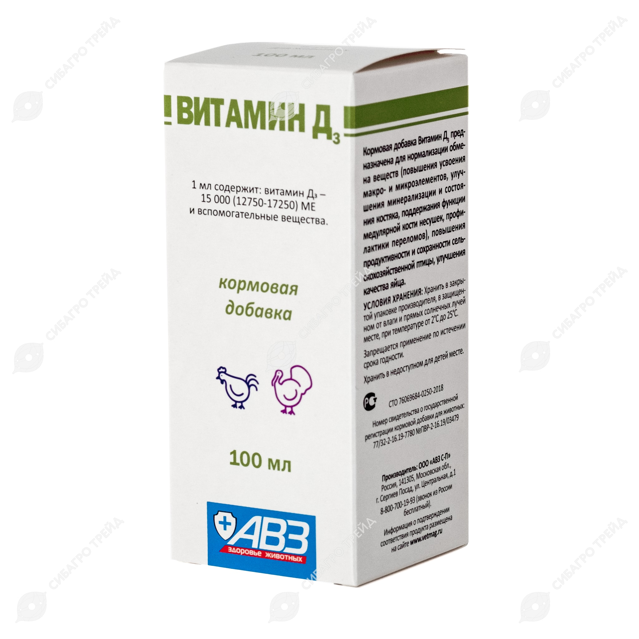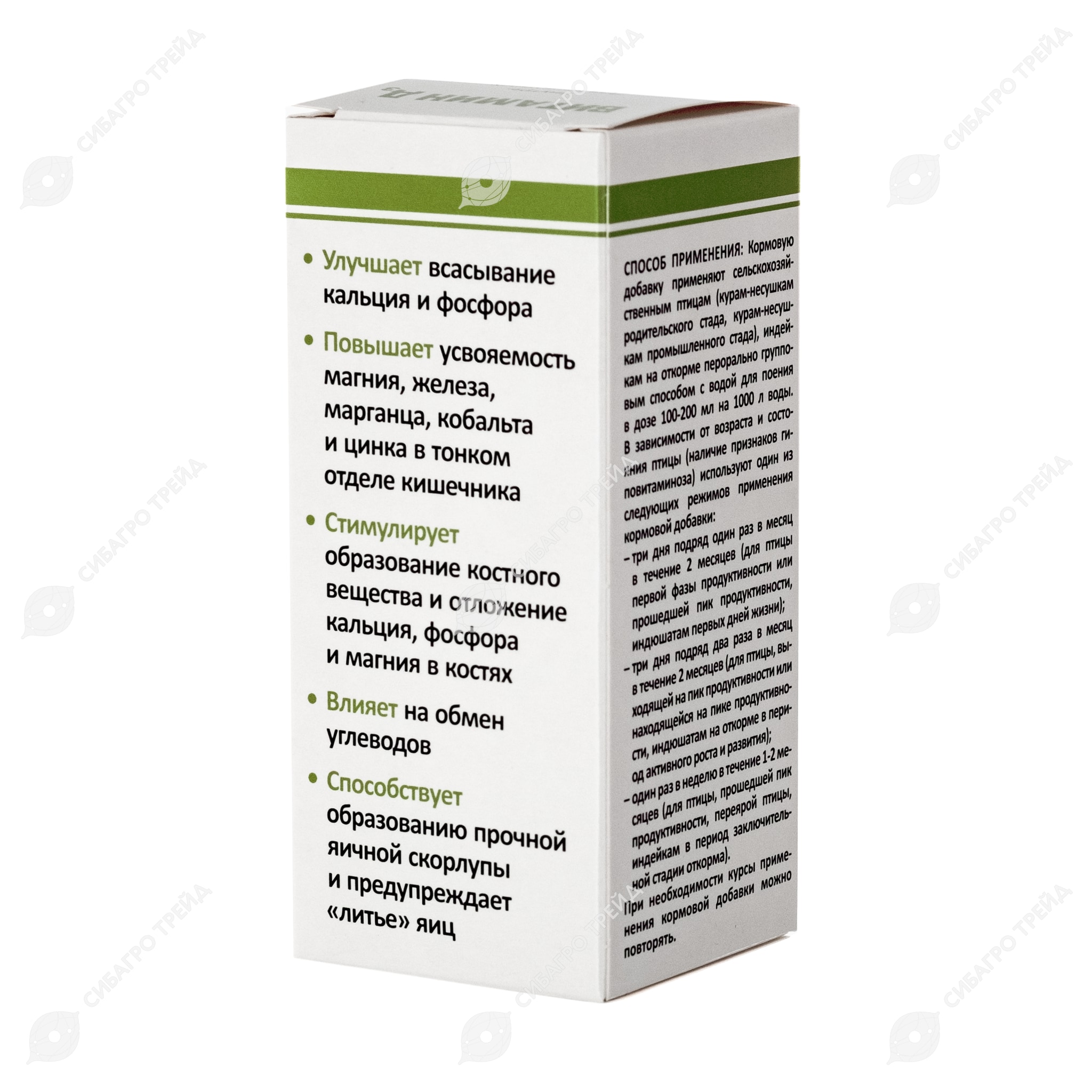 Кормовая добавка Витамин Д3 предназначена для нормализации обмена веществ (повышения усвоения макро- и микроэлементов , улучшения минерализации и состояния костяка, поддержания функции медулярной кости несушек, профилактики переломов) , повышения продуктивности и сохранности сельскохозяйственной птицы, улучшения качества яйца.