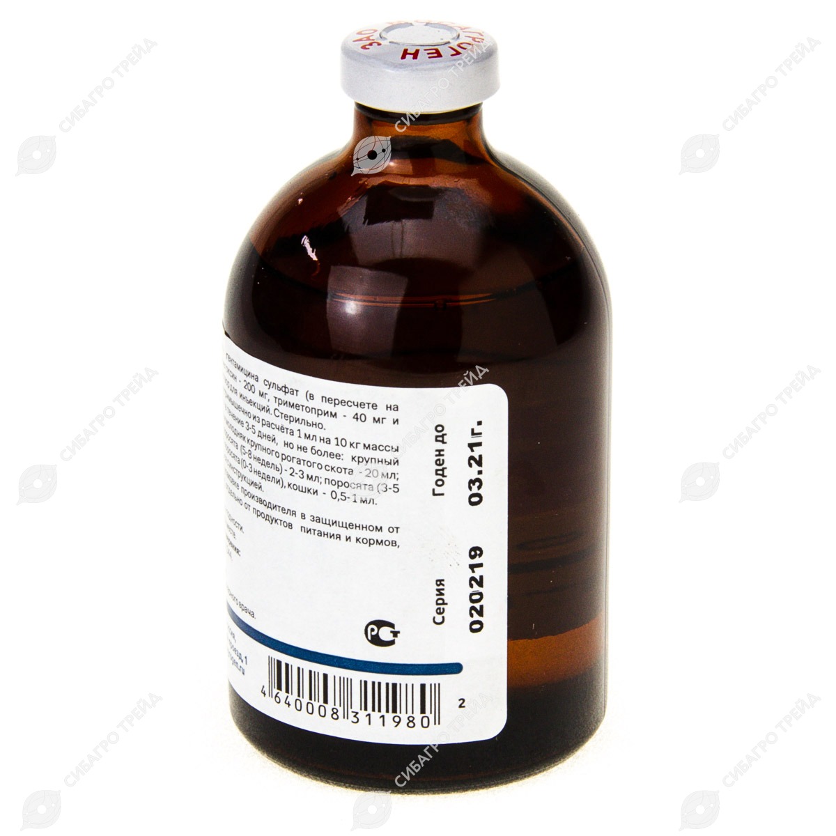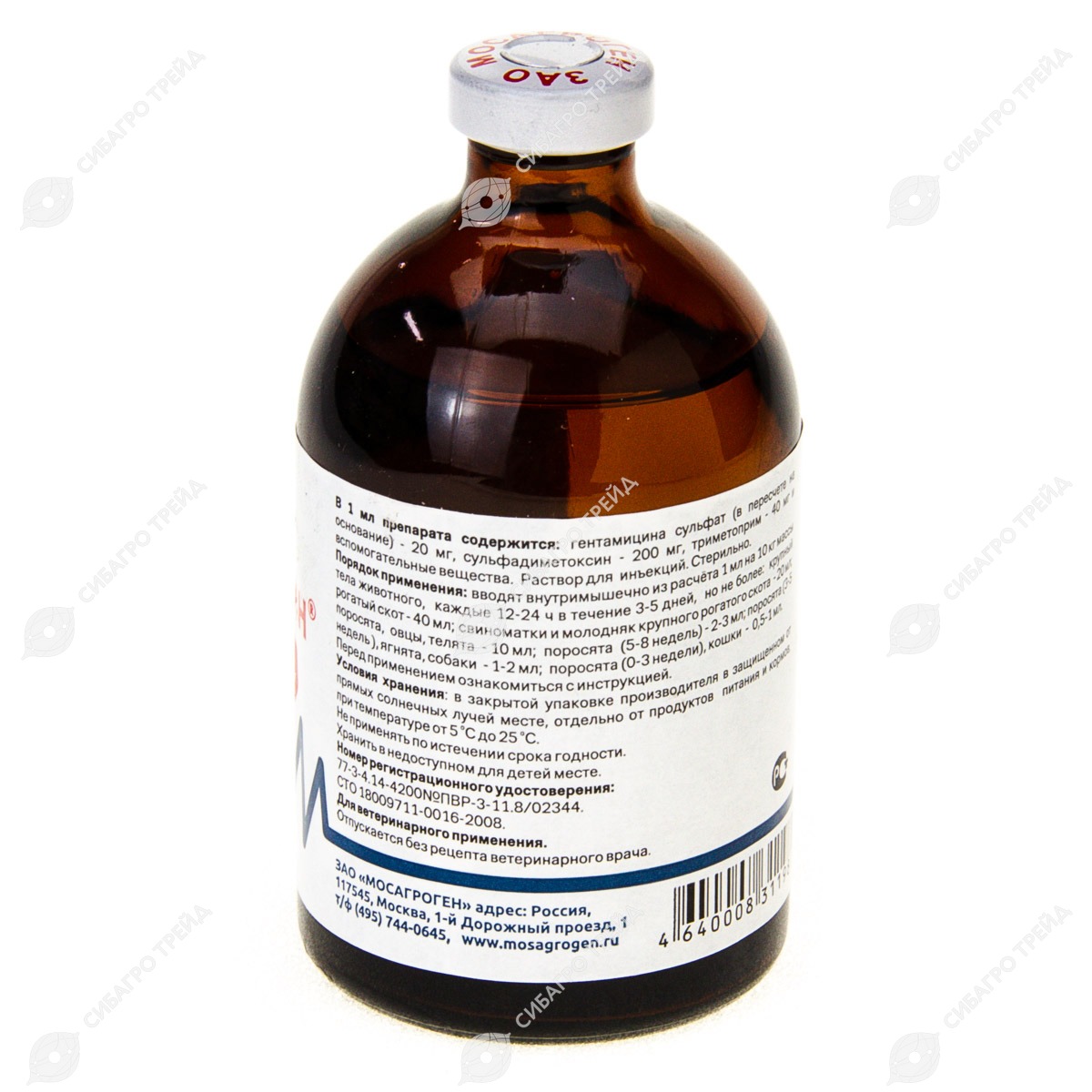 В 1 мл препарата содержится гентамицина сульфат (в пересчете на основание) 20 мг, сульфадиметоксин 200 мг, триметоприм 40 мг. Вспомогательное вещество: вода д/и. Расфасован по 100 мл в стеклянные флаконы, укупоренные резиновыми пробками и обкатанные алюминиевыми колпачками.