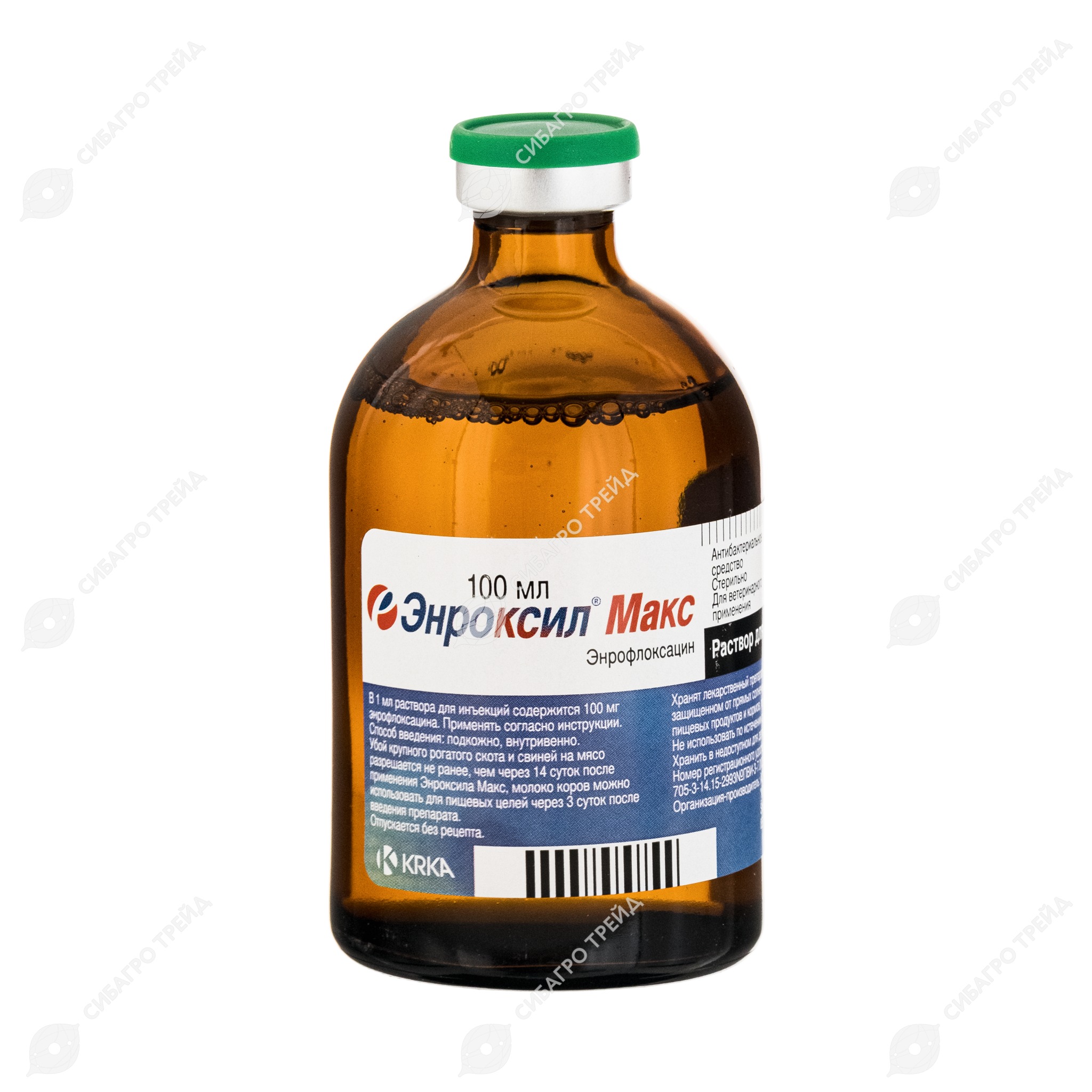 После подкожного и внутримышечного введения препарата энрофлоксацин хорошо всасывается из места инъекции и проникает во все органы и ткани организма. Его максимальная концентрация в крови достигается в среднем через 6 часов, и антибактериальные концентрации поддерживаются на протяжении 2-х суток. Энрофлоксацин частично метаболизируется в печени и выводится из организма с мочой и желчью.