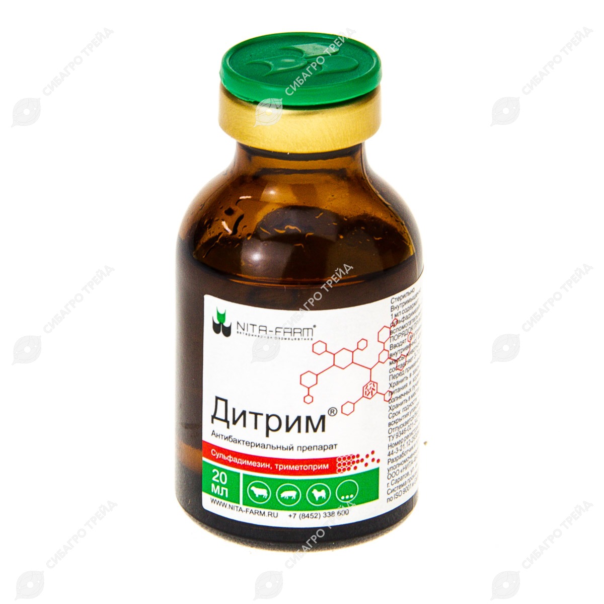 Препарат Дитрим® вводят внутримышечно в область шеи (лошадям внутривенно) один раз в сутки в дозе 1 мл на 10 кг массы животного. При тяжелом течении болезни первые 2 – 3 дня препарат применяют два раза в сутки с интервалом 12 часов в той же дозе.