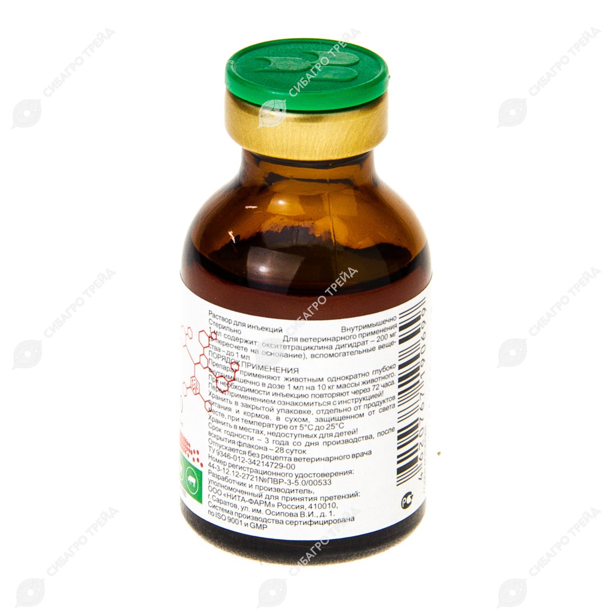 Механизм действия окситетрациклина заключается в подавлении синтеза белка микроорганизмов. Длительное (пролонгированное) действие лекарственного препарата обусловлено комплексом окситетрациклина с магнием. При внутри-мышечном введении окситетрациклин быстро всасывается из места инъекции и достигает максимальных концентраций в органах и тканях через 30-50 минут по-сле введения. Терапевтический уровень антибиотика в сыворотке крови сохра-няется в течение 60-72 часов. Выводится из организма окситетрациклин преиму-щественно с мочой и желчью, у лактирующих животных – частично с молоком.