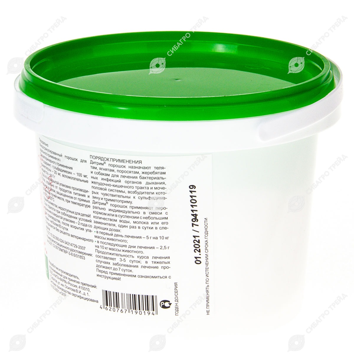 Убой на мясо разрешается не ранее, чем через 7 дней после последнего применения Дитрима порошка. В случае вынужденного убоя животных ранее установленного срока мясо разрешается использовать в корм зверям или для производства мясокостной муки.