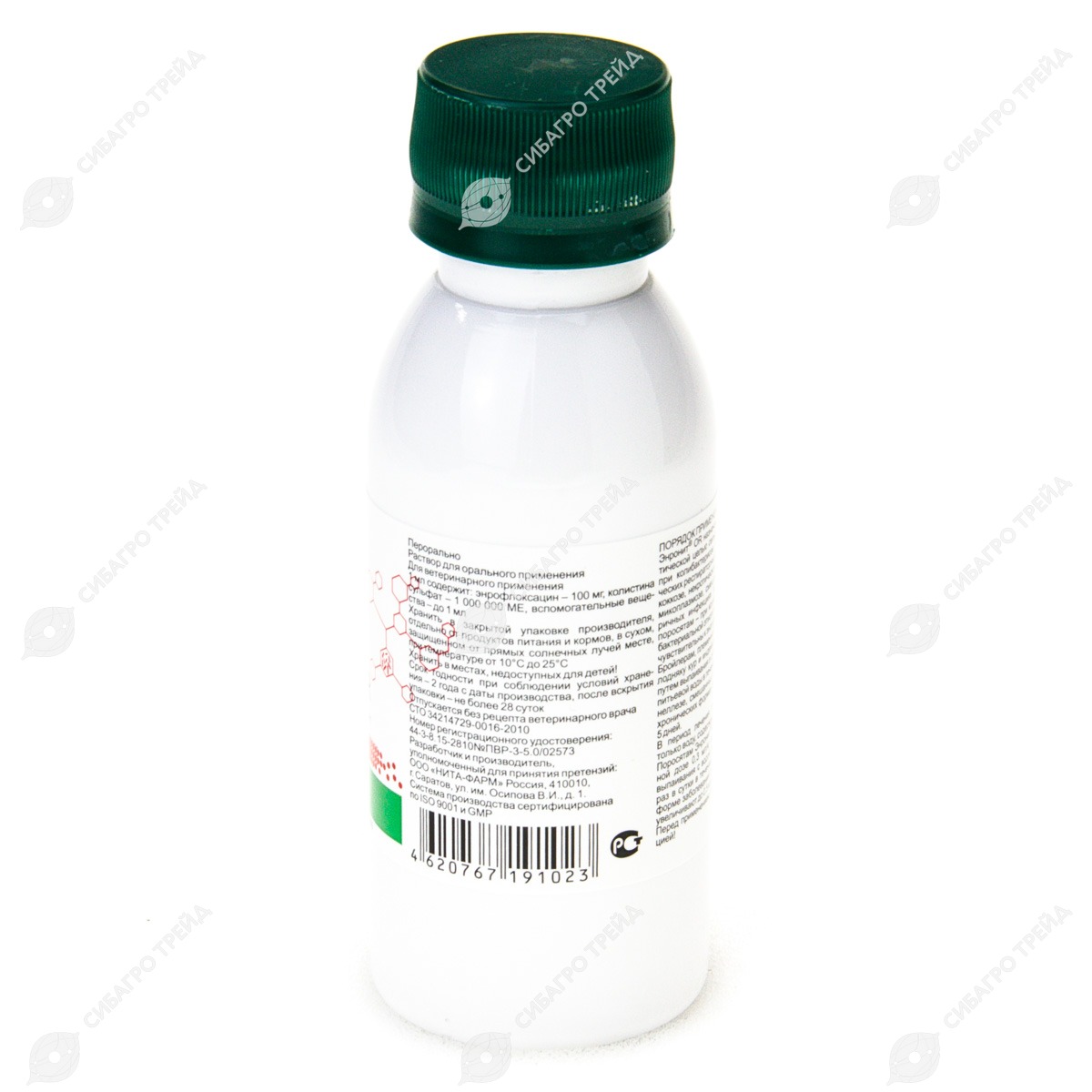 После перорального применения препарата, энрофлоксацин хорошо и быстро всасывается в желудочно-кишечном тракте и проникает в органы и ткани, выводится из организма преимущественно в неизмененном виде с мочой и частично с фекалиями; колистина сульфат практически не всасывается в желудочно-кишечном тракте, не накапливается в органах и тканях, из организма выводится преимущественно в неизмененном виде с фекалиями.