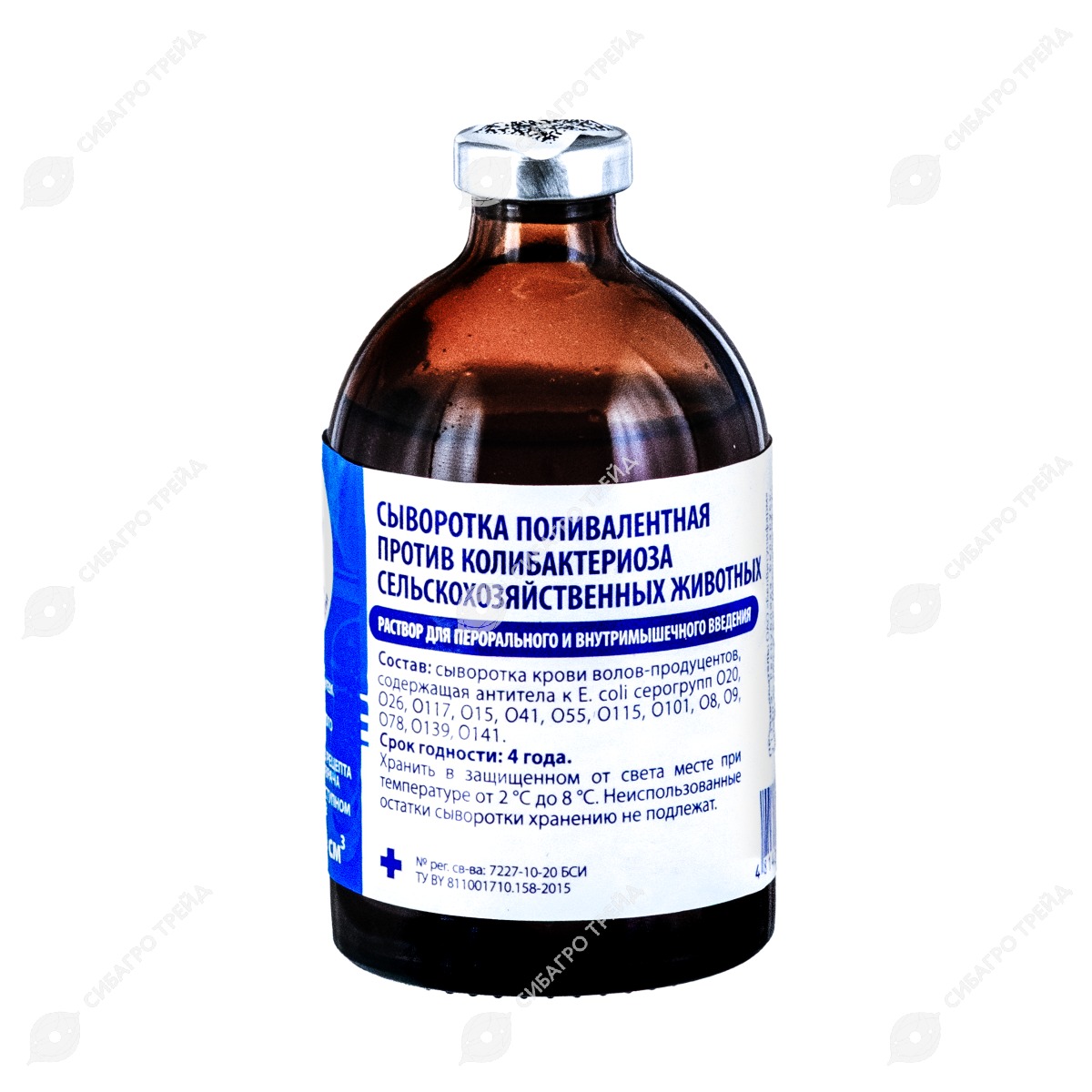 Препарат представляет собой сыворотку крови волов-продуцентов, полученную после гипериммунизации инактивированным антигеном Е. coli серогрупп 020, 026, 0117, 015, 041, 055, 0115, 0101, 08, 09, 078, 0139, 0141.