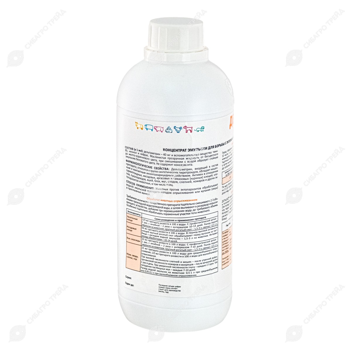 Лекарственное средство для наружного применения в качестве действующего вещества содержит синтетический пиретроид дельтаметрин – 4,0%. Дельтаметрин обладает выраженным инсектоакарицидным кишечным и контактным действием. Активен в отношении саркоптоидных, иксодовых и куриных клещей, постельных клопов, пухопероедов, вшей, блох, мух, слепней, комаров и других эктопаразитов животных.