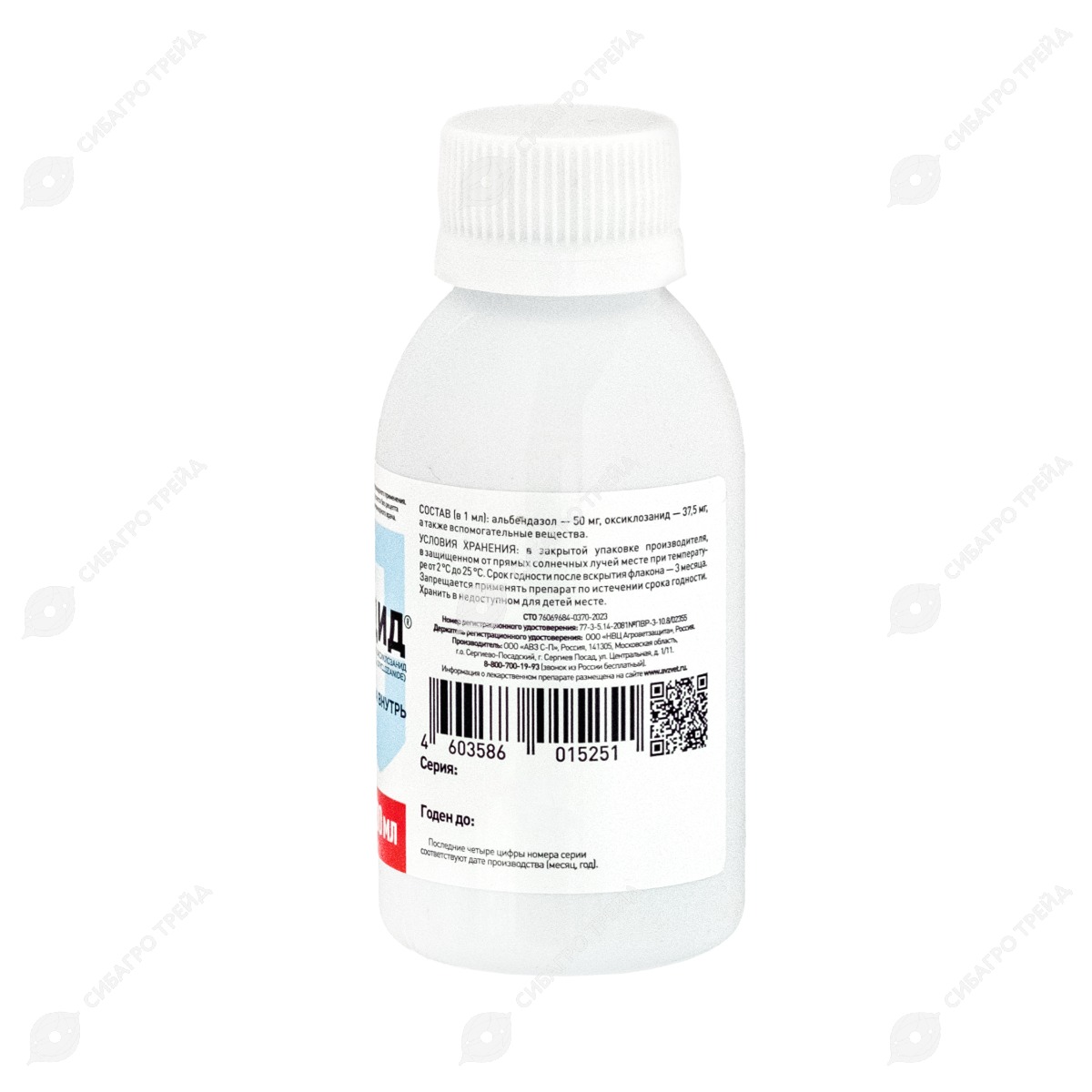 Лекарственный препарат в качестве действующих веществ содержит в 1 мл: альбендазол - 50 мг и оксиклозанид - 37,5 мг, а также вспомогательные вещества: твин-80, нипагин, нипазол, лактозу и воду очищенную.