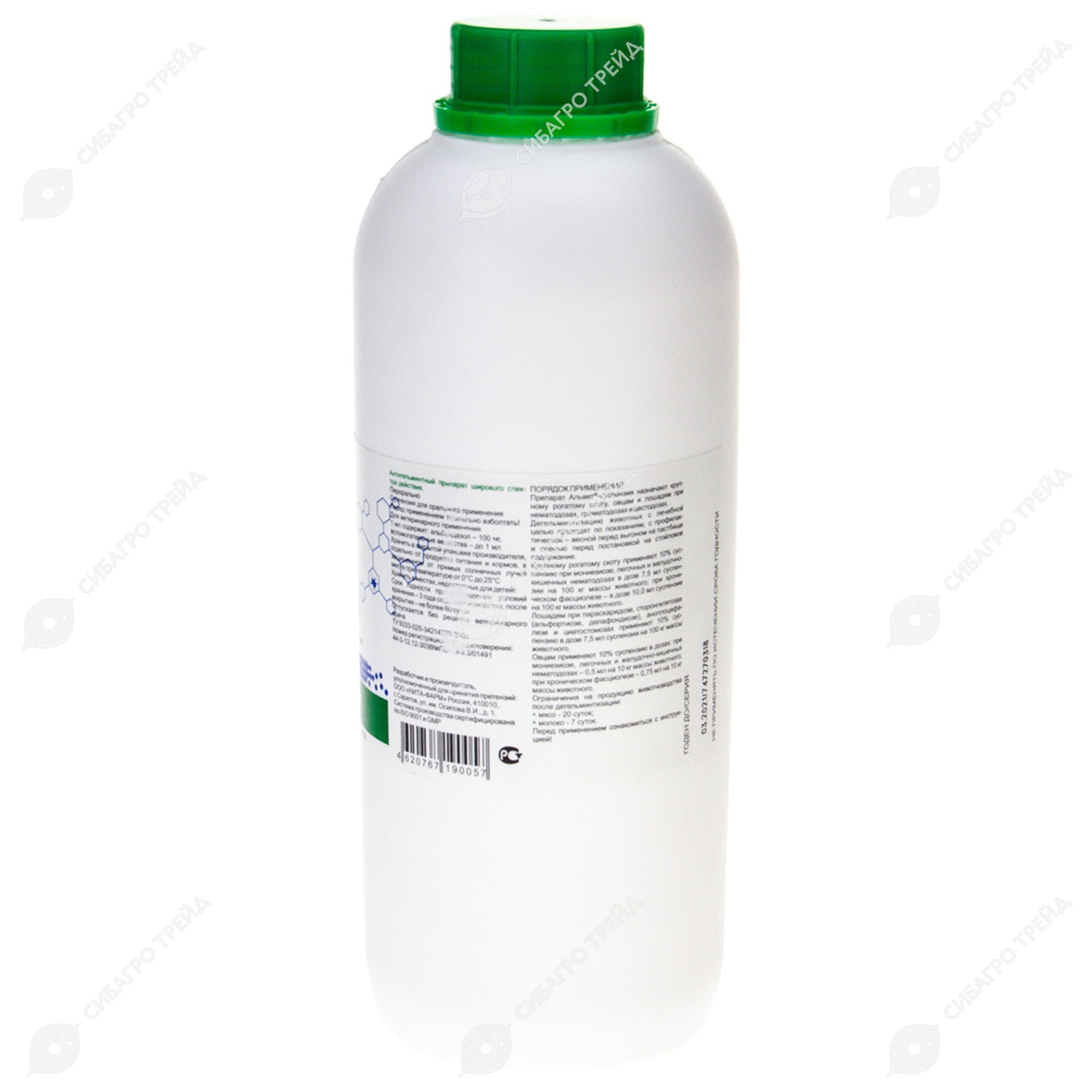 Крупному рогатому скоту препарат назначают индивидуально в виде 10%-ной суспензии при мониезиозе, легочных и желудочно-кишечных нематодозах в дозе 7,5 мл/ 100 кг, при хроническом фасциолезе – 10 мл/100 кг массы животного, что составляет соответственно 7,5 мг/кг и 10 мг/кг альбендазола.