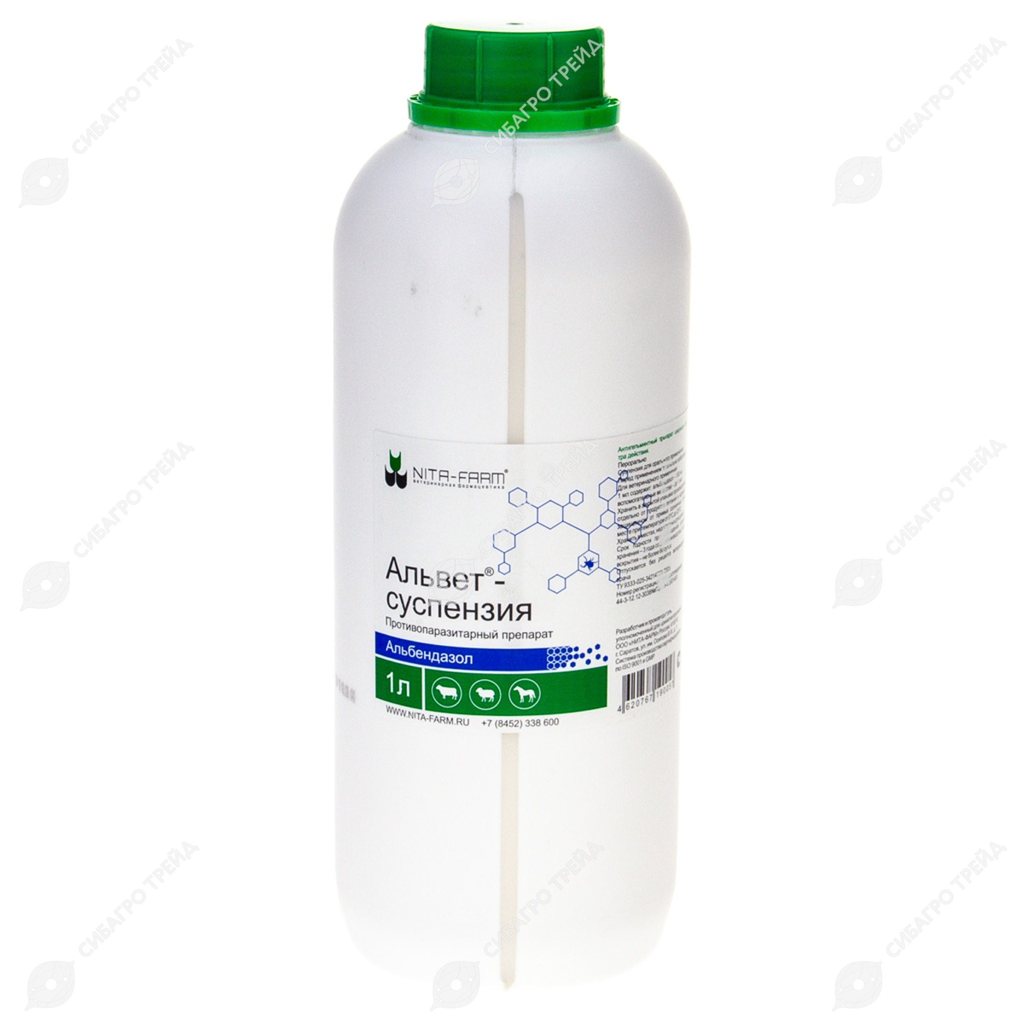 При пероральном введении препарата альбендазол всасывается в желудочно-кишечном тракте и проникает в органы и ткани; из организма выводится в основном с мочой и фекалиями. Альвет – суспензия по степени воздействия на организм согласно ГОСТ 12.1.007-76 относится к умеренно опасным веществам (3 класс опасности): ЛД50 при пероральном введении белым мышам составляет более 2500 мг/кг, в рекомендуемых дозах хорошо переносится животными, не обладает гепатотоксическим и сенсибилизирующим действием.