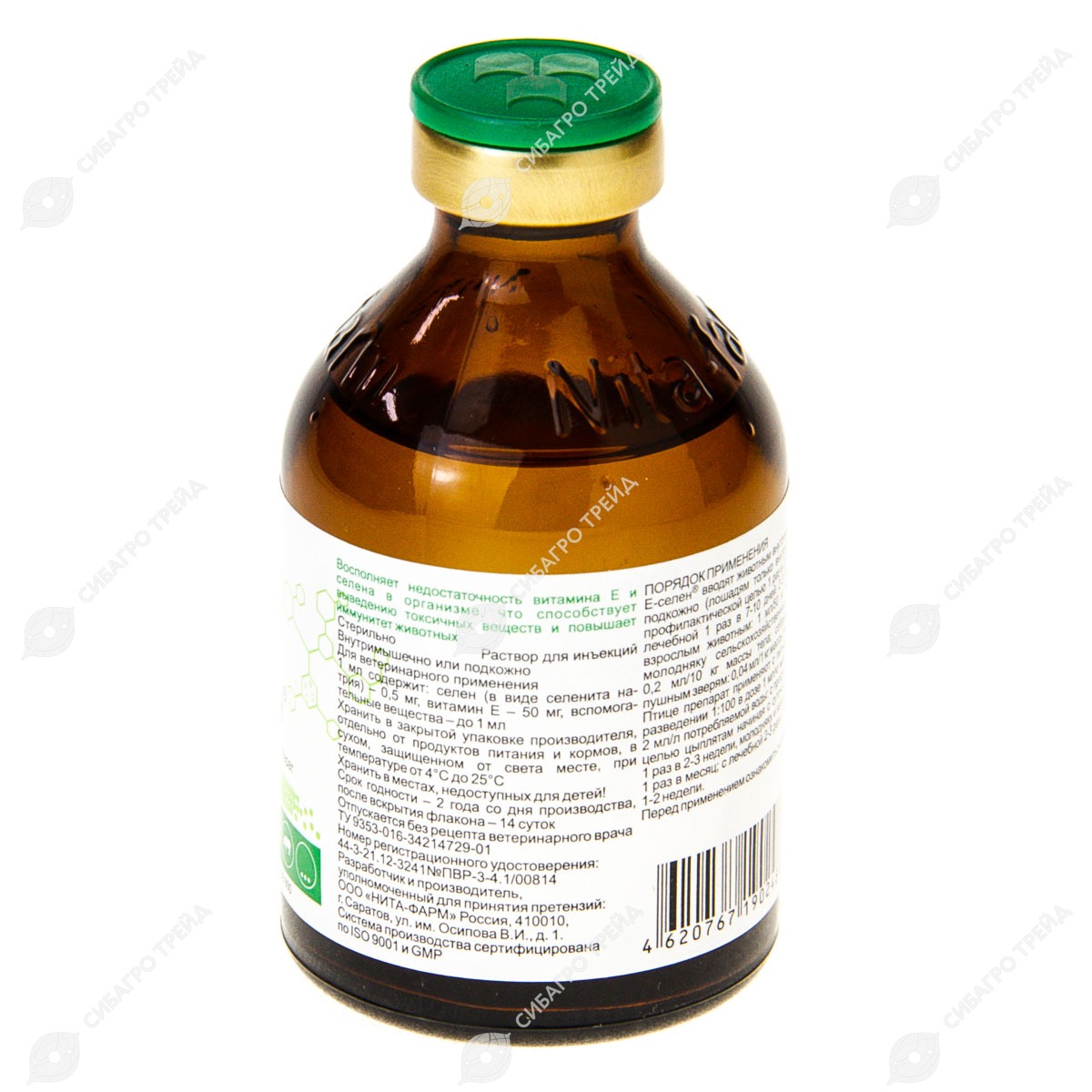 Введение препарата в организм приводит к быстрому возрастанию уровня витамина Е и селена в организме животных, нормализации обменных процессов.
