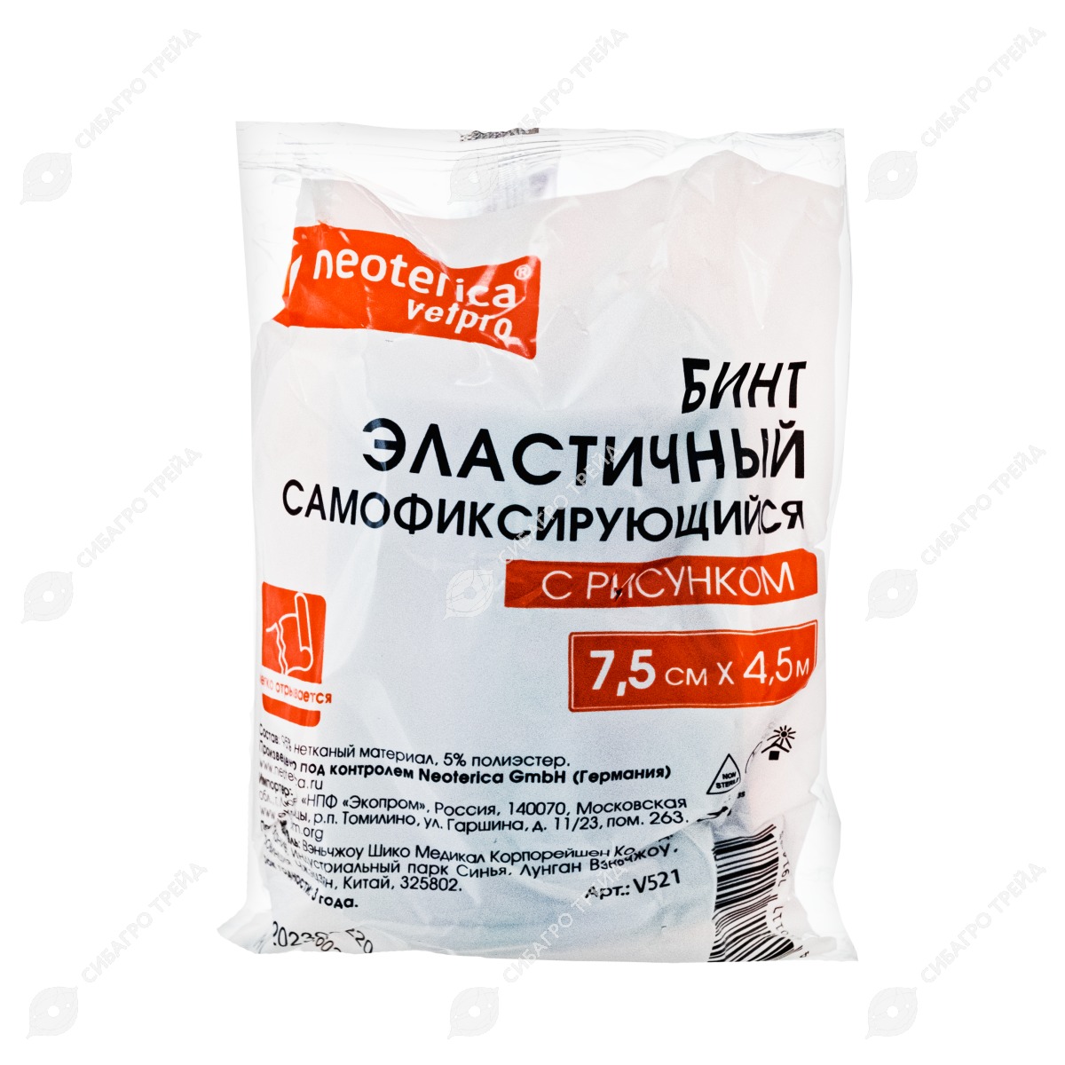 - Загнутый кончик и легкий отрыв бинта облегчают работу ветеринарного врача.