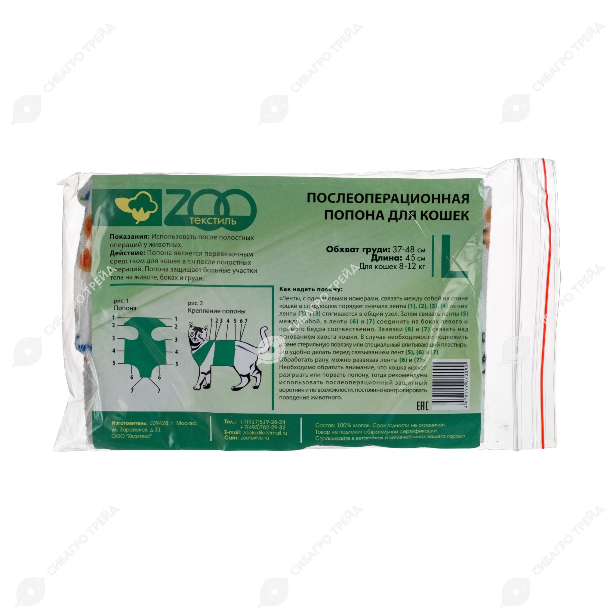 Попона послеоперационная для кошек, размер L, ZОО текстиль