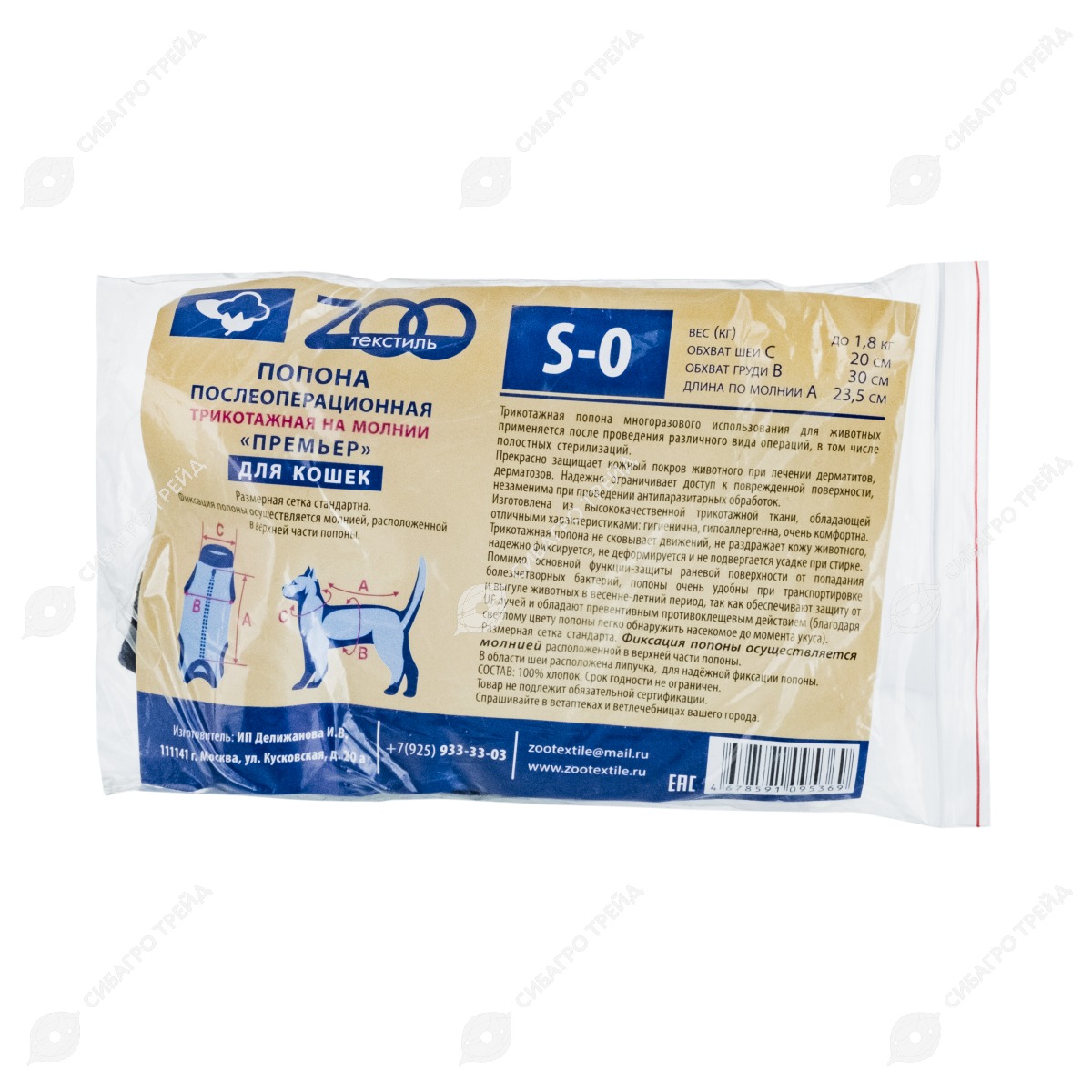 Попона трикотажная на молнии «ПРЕМЬЕР» для кошек - послеоперационное изделие бренда ZOOТекстиль. Применяется после операций, в том числе полостных, стерилизаций, защищает кожный покров при лечении дерматитов и дерматозов, ограничивает доступ к повреждённой поверхности, незаменима при проведении антипаразитарных обработок.