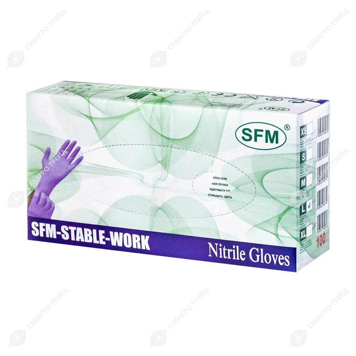 Перчатки нитриловые, плотные, размер L, 50 пар, SFM