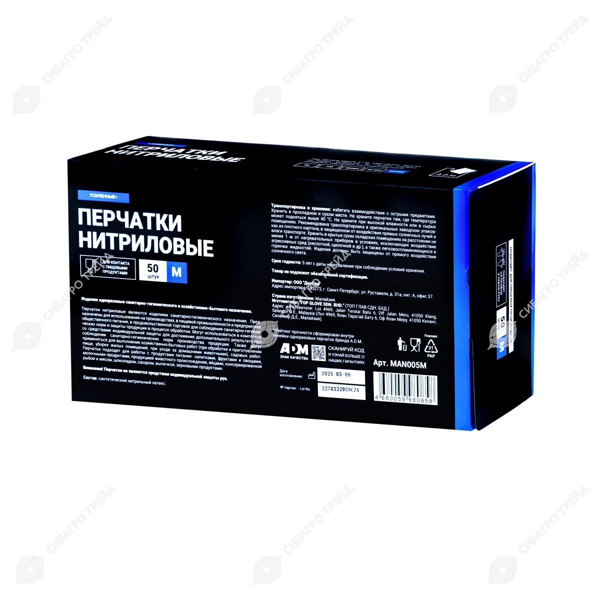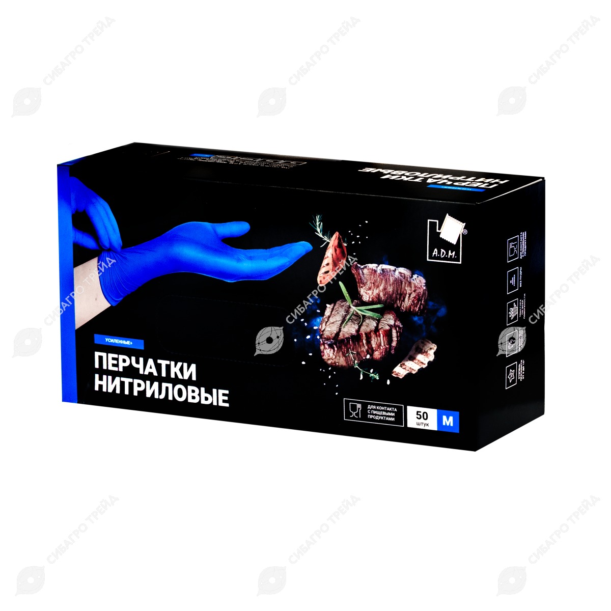 Перчатки нитриловые A.D.M. с удлиненной манжетой "Усиленные+" M, 50 шт