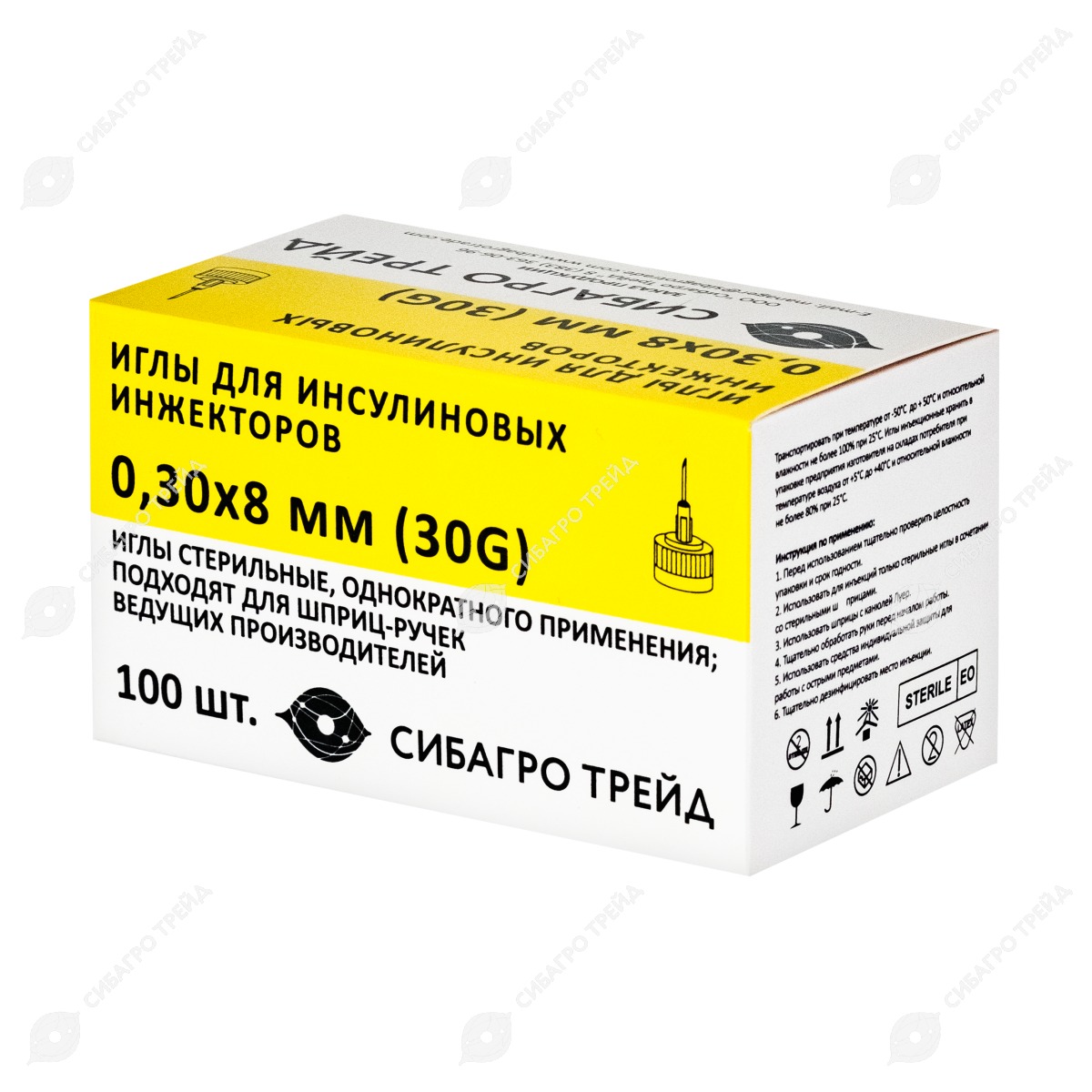 Игла для инсулиновых инжекторов (0,3 * 8 мм) 30G стерильная, 100 шт (для шприц-ручек ВИНСУВЕТ)