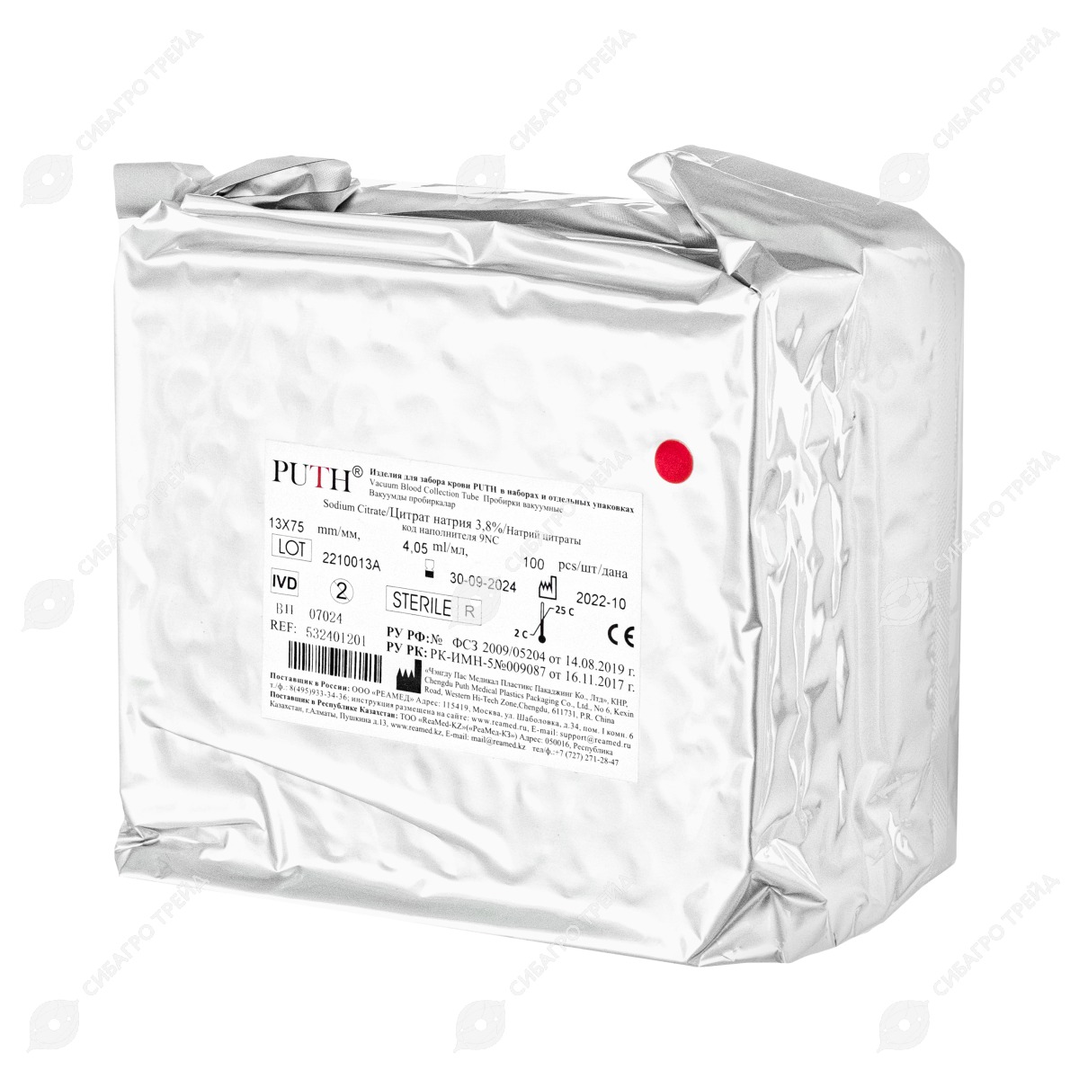 -----Пробирка вакуумная, цвет СИНИЙ (цитрат натрия 3,8%, исследования коагуляции), 4,05 мл, 100 шт