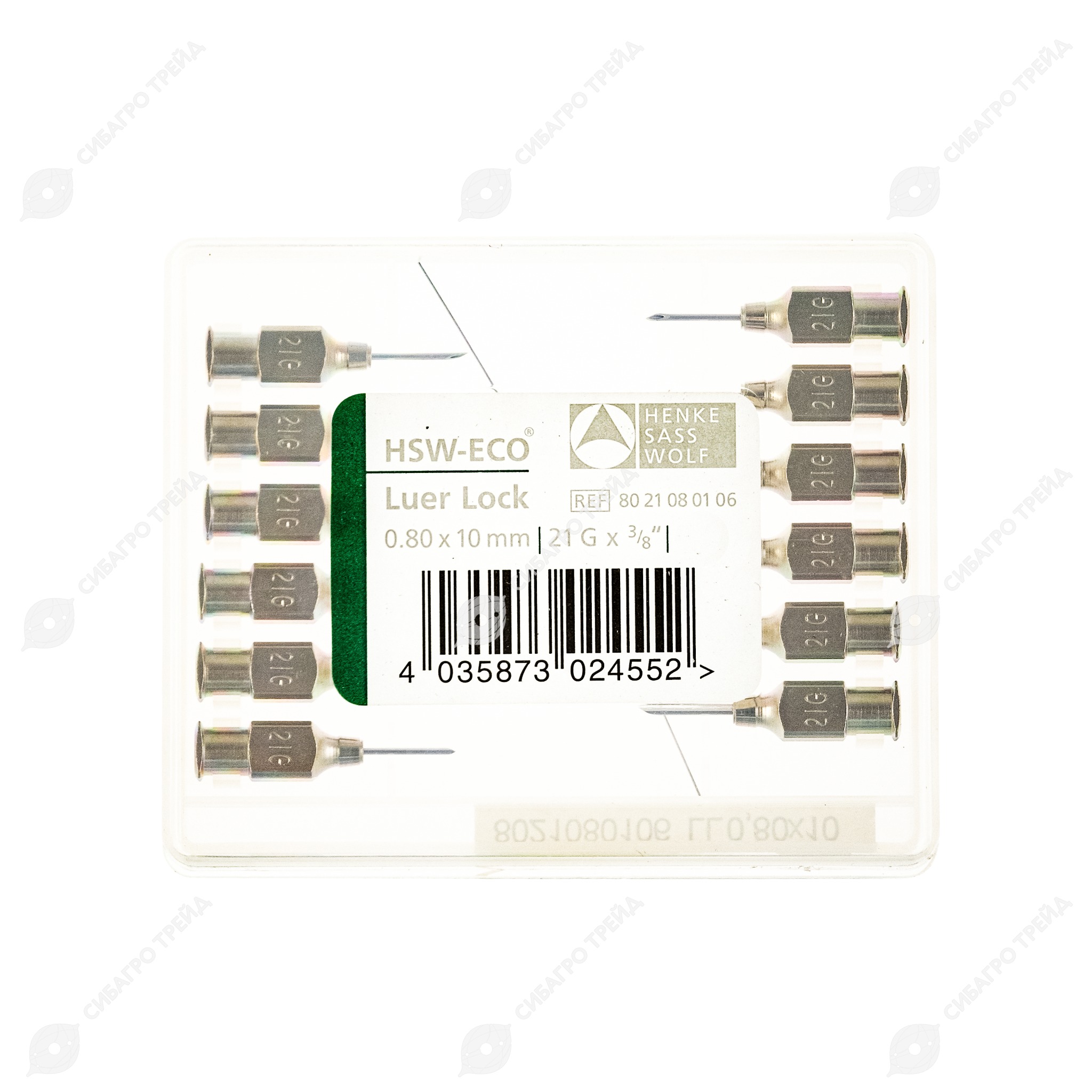 Игла 0,8 * 10 Luer, 12 шт, HSW-ECO