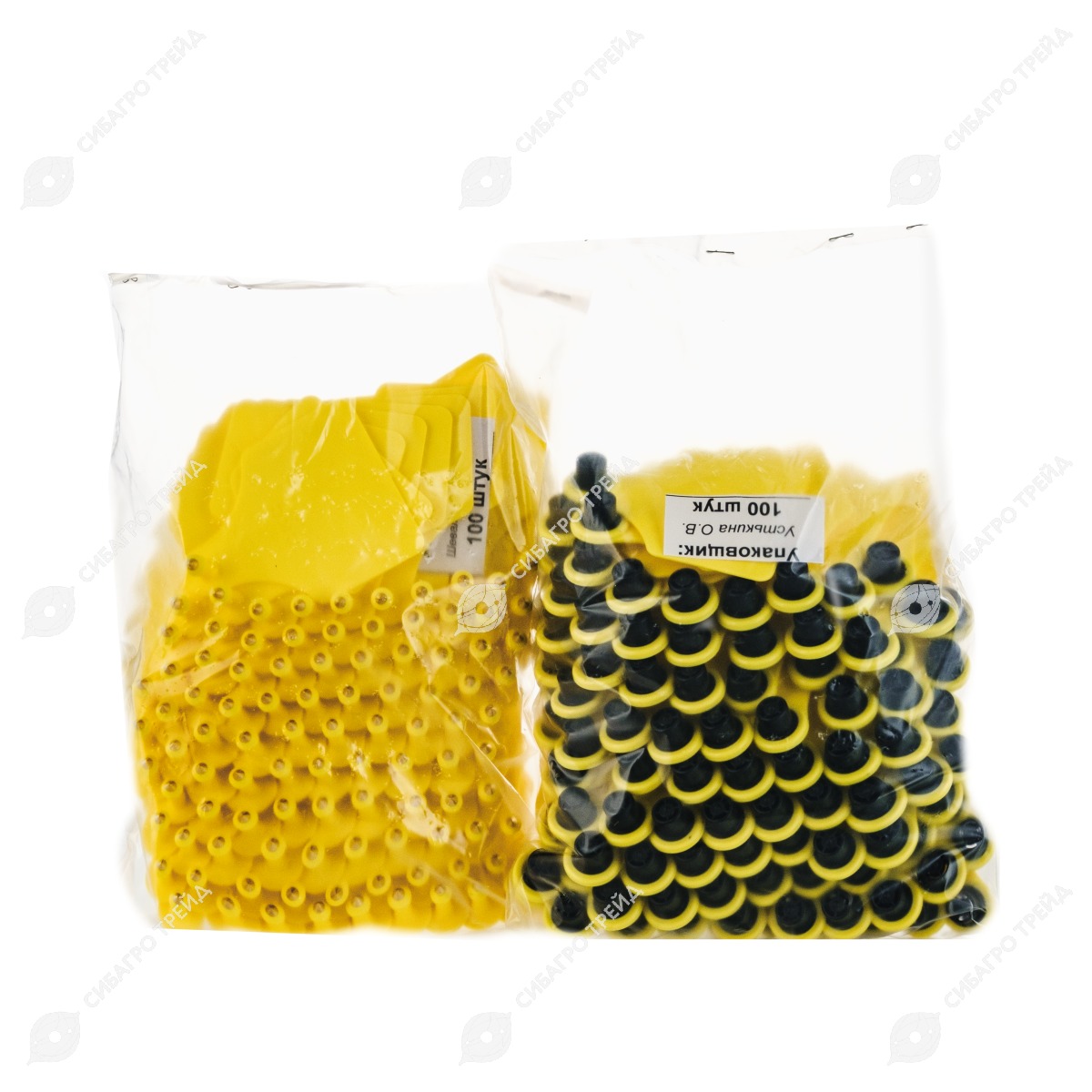 Бирка двойная СКС (61 * 80 мм) жёлтая, металлический наконечник (под щипцы СКС с ИГЛОЙ), 100 шт