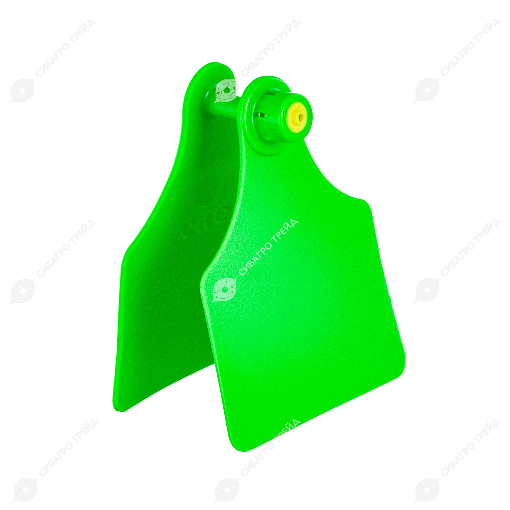 Бирка двойная СКС (61 * 80 мм) зелёная без номера (под щипцы СКС с иглой), 100 шт