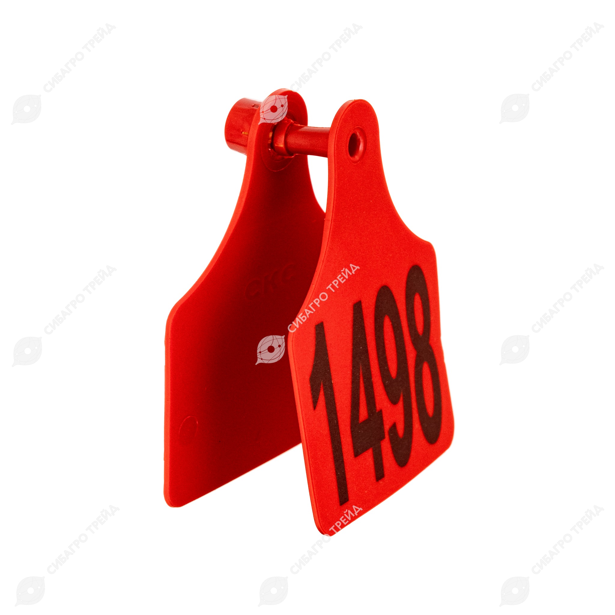 Бирка двойная СКС (61 * 80 мм) красная с номером (под щипцы СКС с иглой), 100 шт